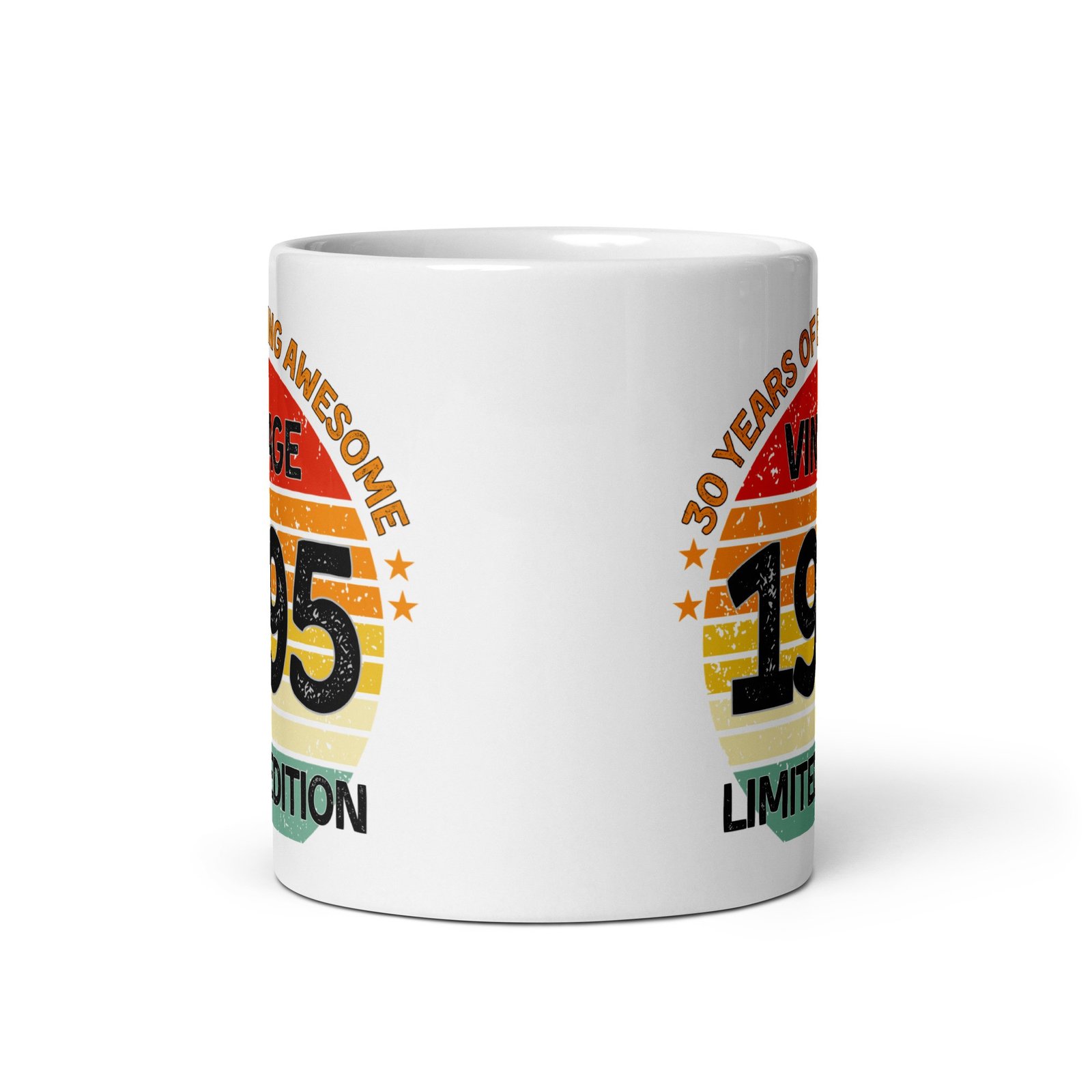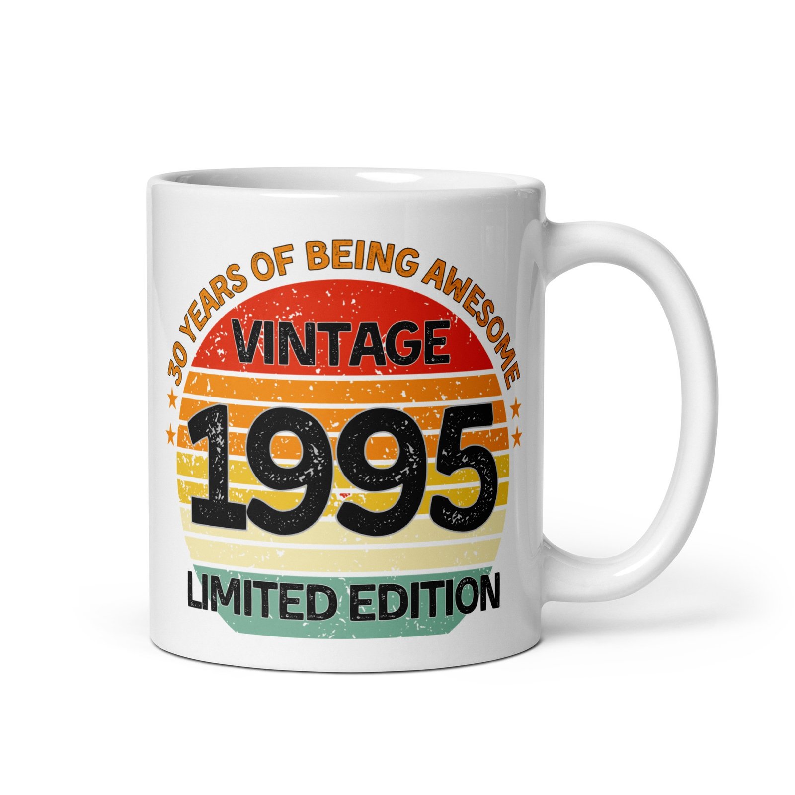 The 1995 Birthday Gift Mug is the ultimate way to celebrate someone born in 1995 who’s marking their 30th birthday in 2025. With the bold text “30 YEARS OF BEING AWESOME – VINTAGE 1995 LIMITED EDITION” printed on the front, this mug is a stylish and practical gift that perfectly captures the occasion. Whether it’s for a morning coffee or a late-night tea, this mug adds a touch of celebration to every sip. It’s a thoughtful and fun keepsake for anyone reaching this milestone year.