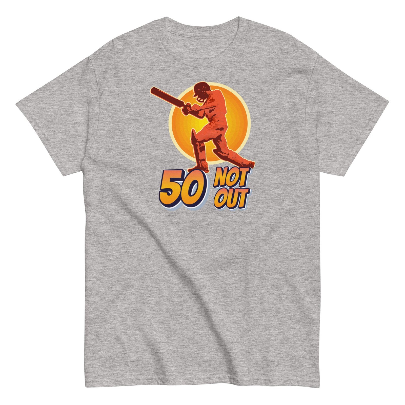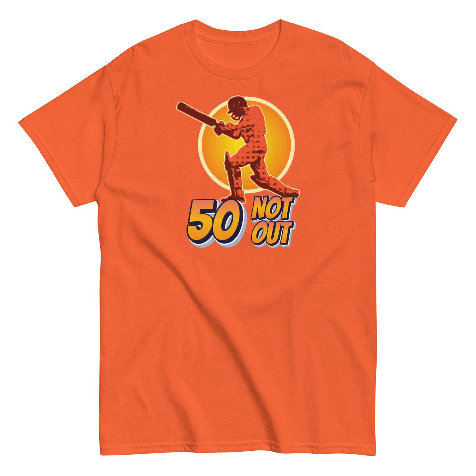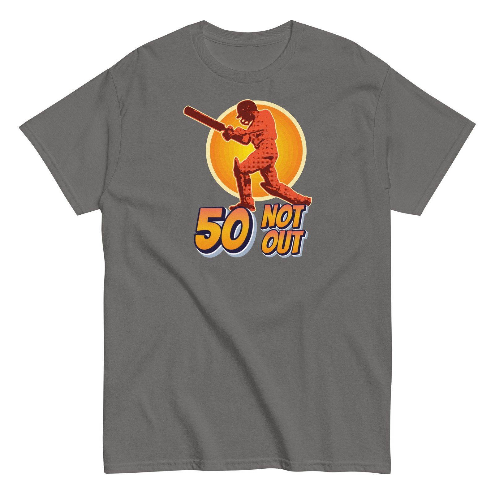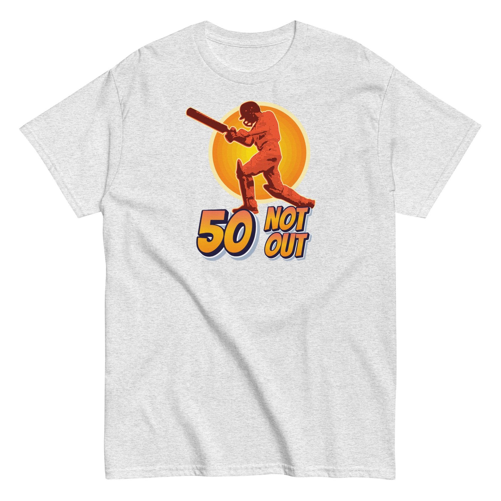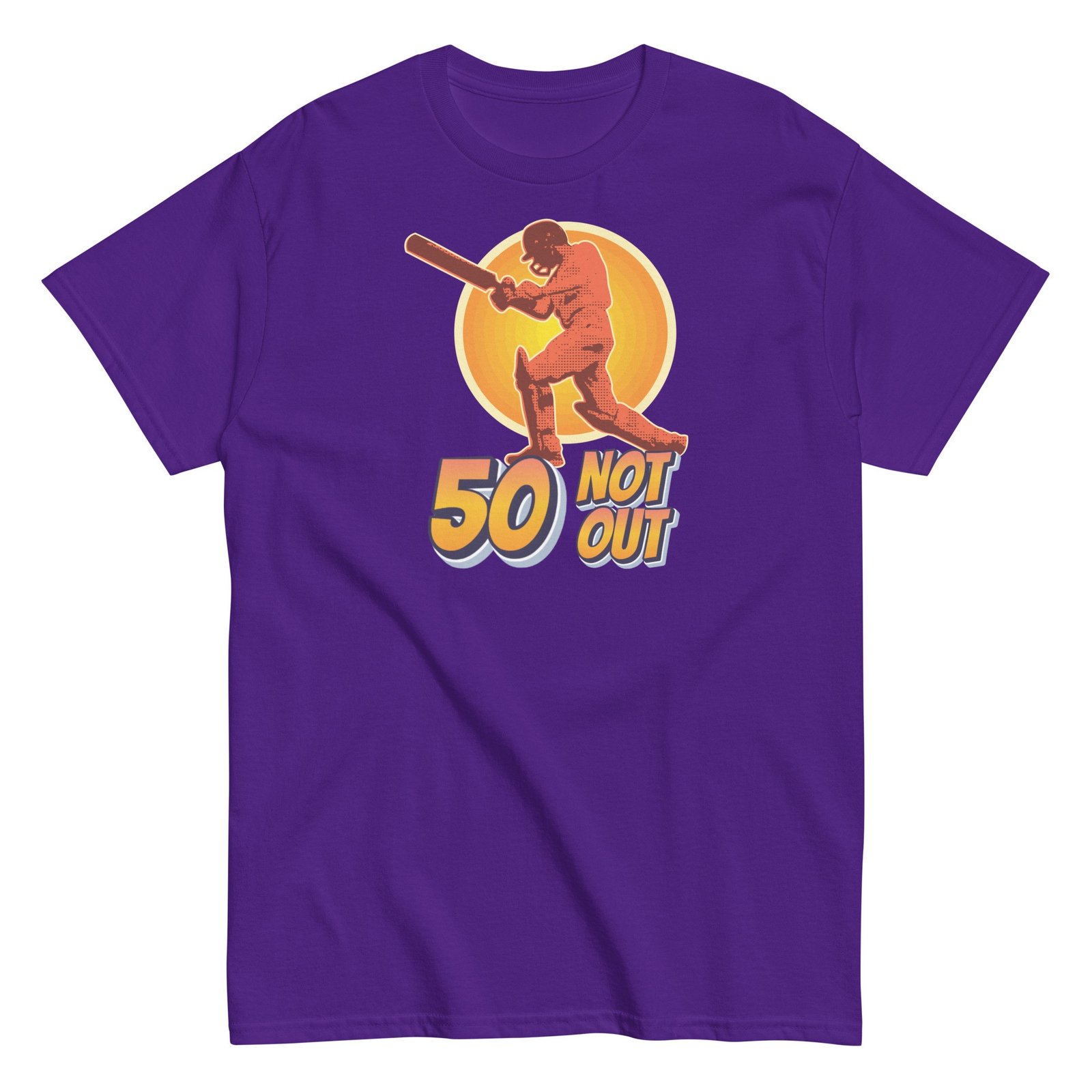 - “50 Not OUT” design with cricket batsman graphic – ideal for celebrating cricket-loving milestone birthdays.