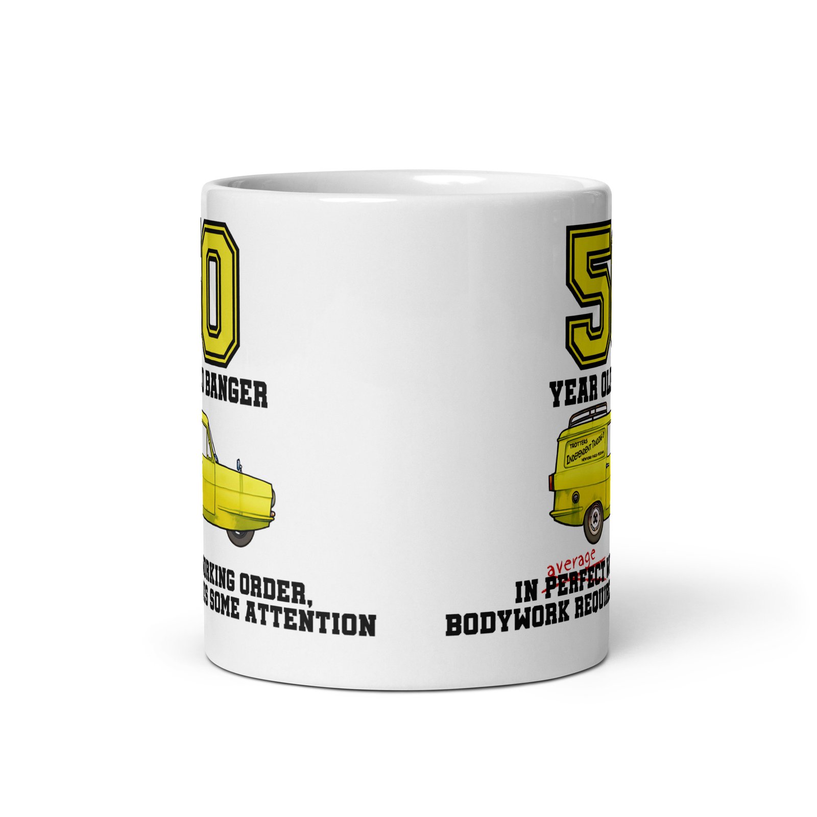 Reaching the big 5-0 is a landmark worth celebrating – and what better way to mark the occasion than with a hearty dose of humour? Our 50th Birthday Old Banger Funny 50th Gift Mug is a brilliant and cheeky gift that’s guaranteed to raise a laugh. With its tongue-in-cheek motoring theme and bold yellow Reliant Robin-style car, it’s the perfect present for any man who’s embracing his vintage status with pride (and a little rust).