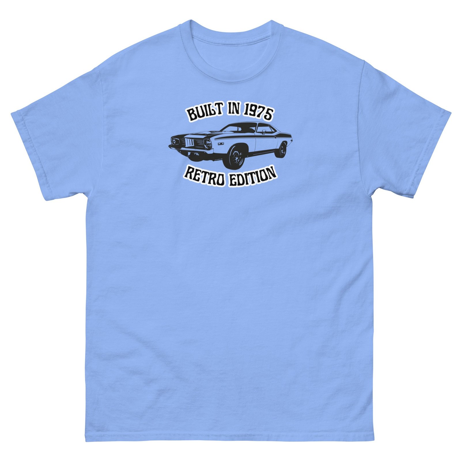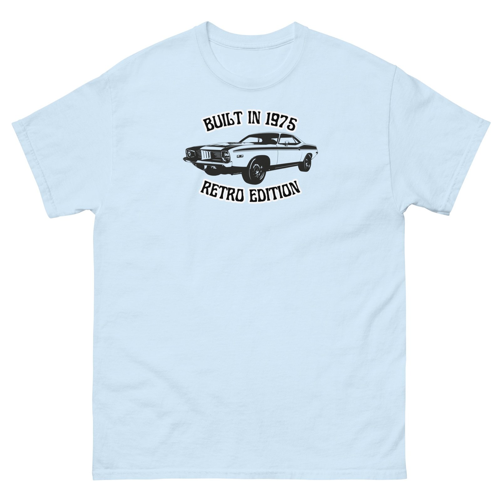 The “Built In 1975 Retro Edition” design brings together the nostalgia of the 1970s with a distinctive vintage car graphic, making it a standout piece. It’s perfect for men who love retro aesthetics or take pride in their birth year. Whether worn at a birthday celebration or during a casual outing, this T-shirt captures the essence of a legendary year with a touch of automotive flair.