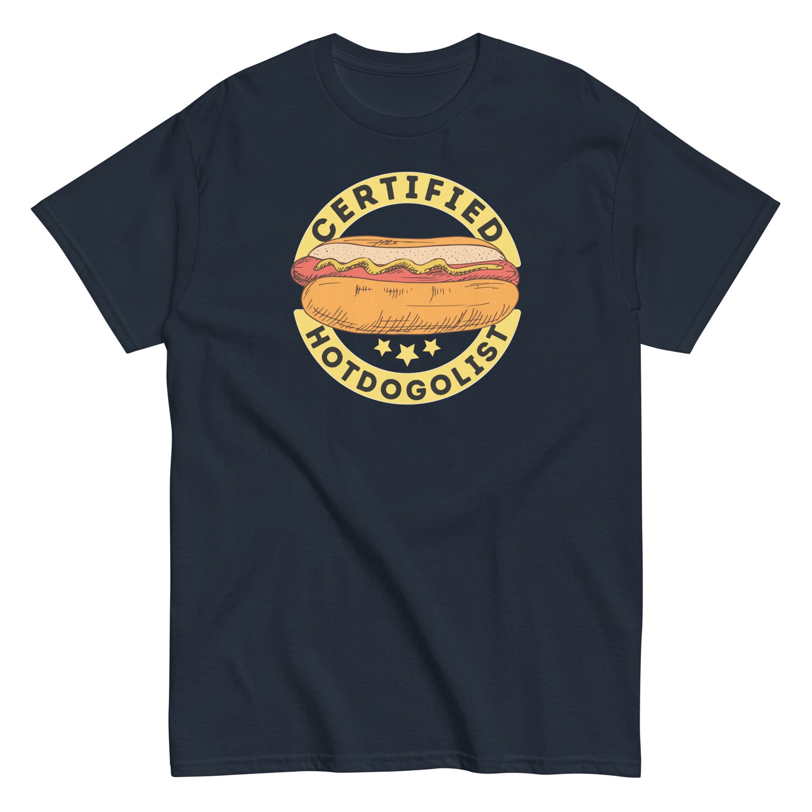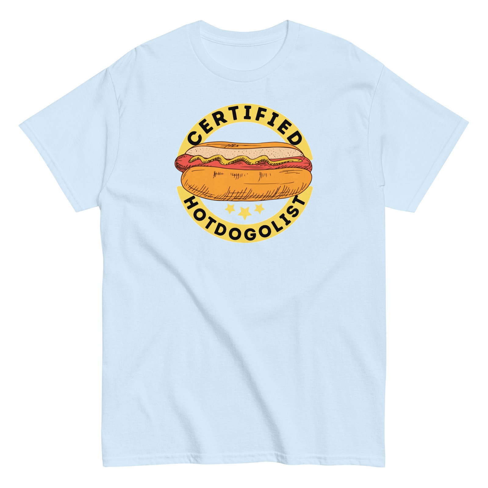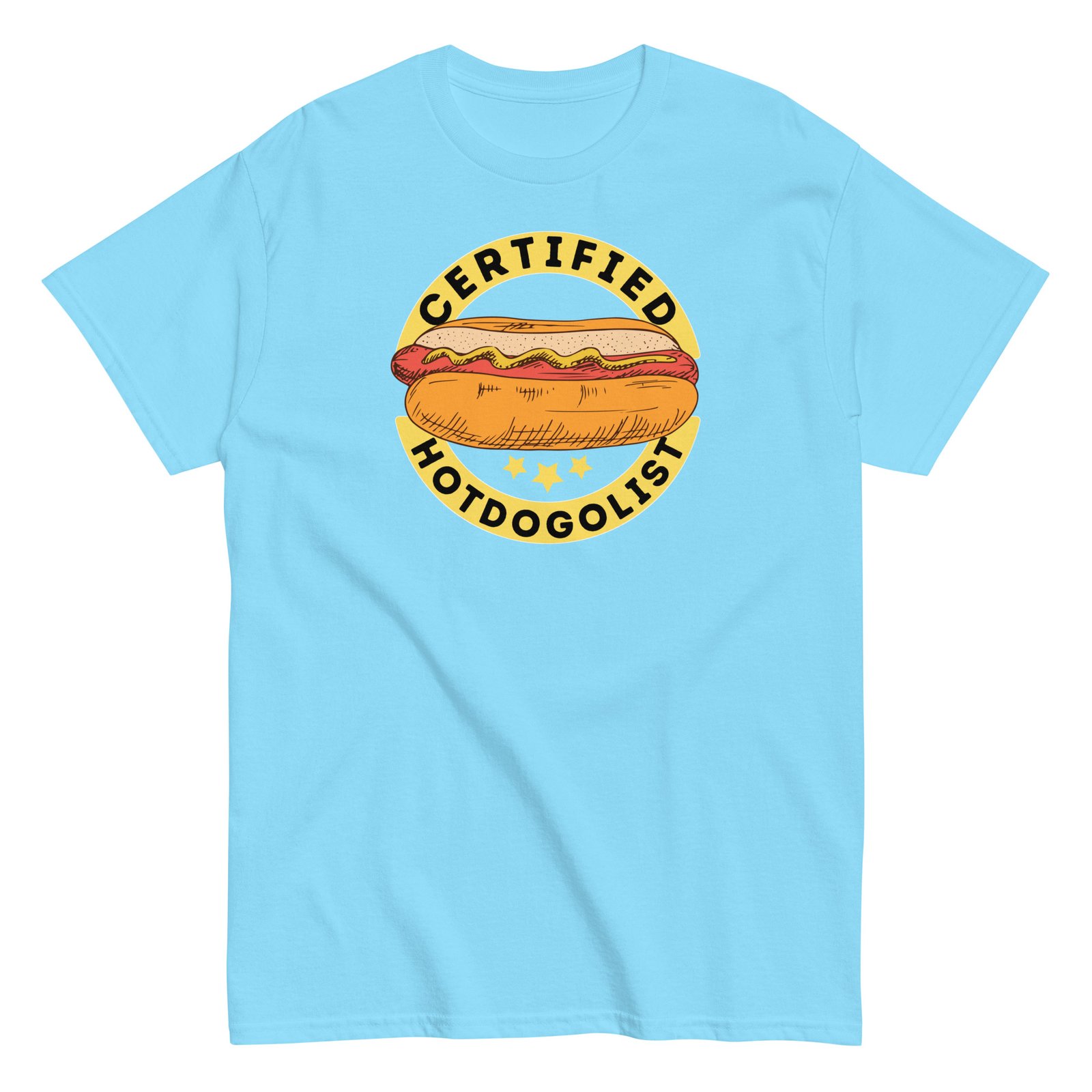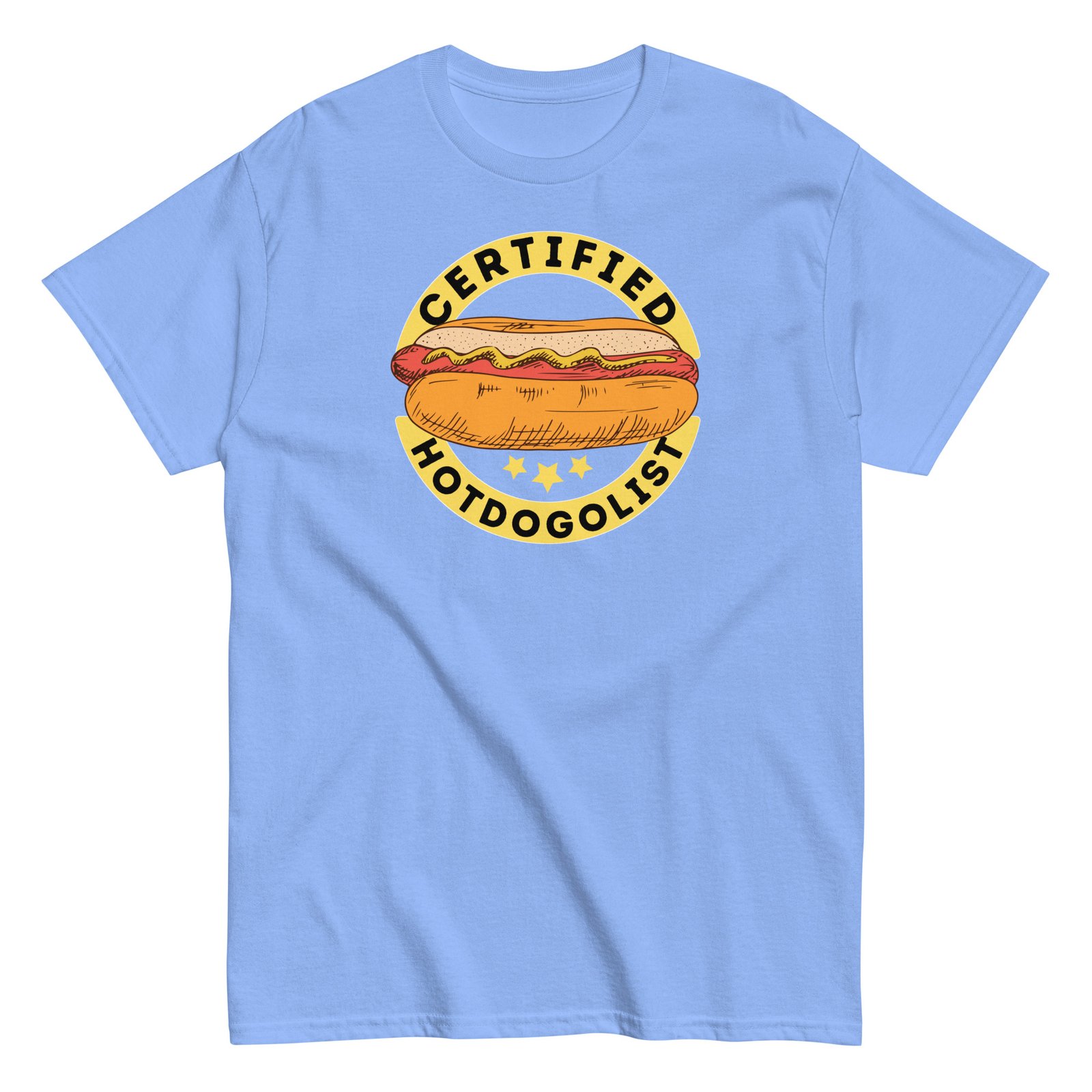 This Certified Hotdogologist T-shirt is made for the man who knows how to enjoy life, one hotdog at a time.