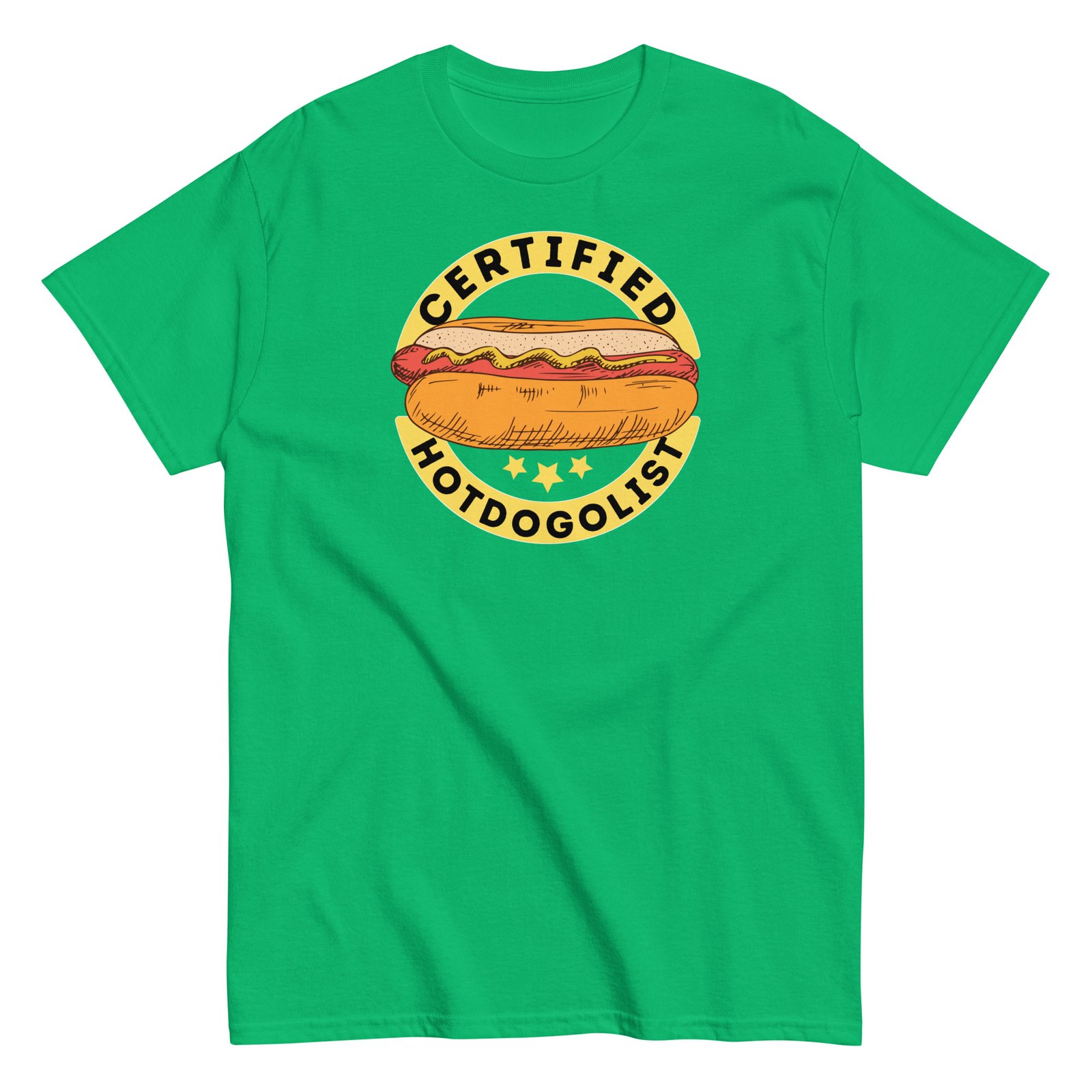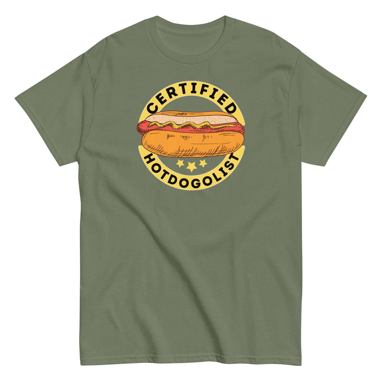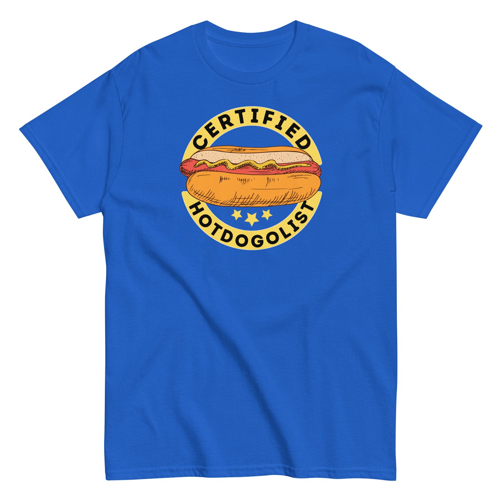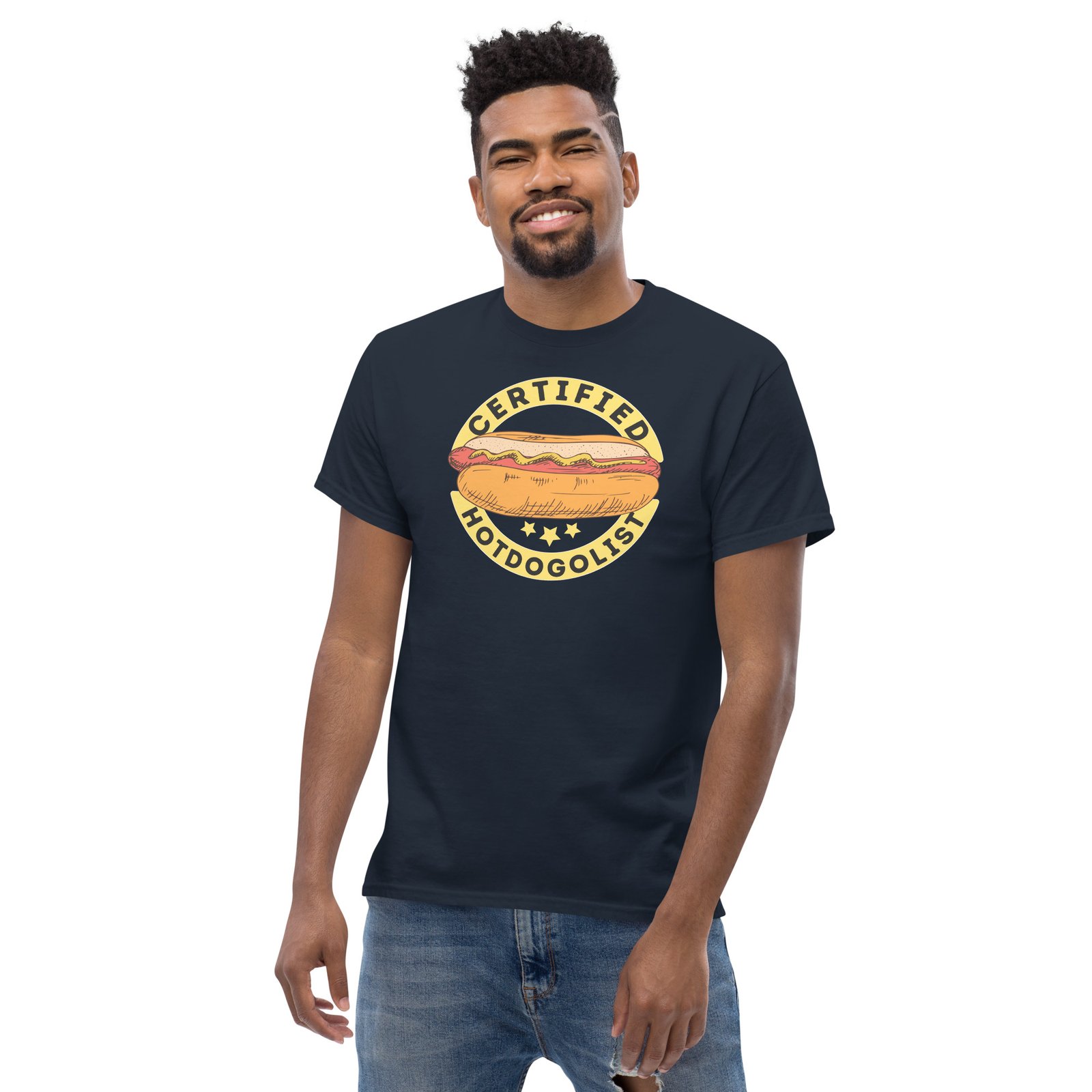 This Certified Hotdogologist T-shirt is made for the man who knows how to enjoy life, one hotdog at a time.