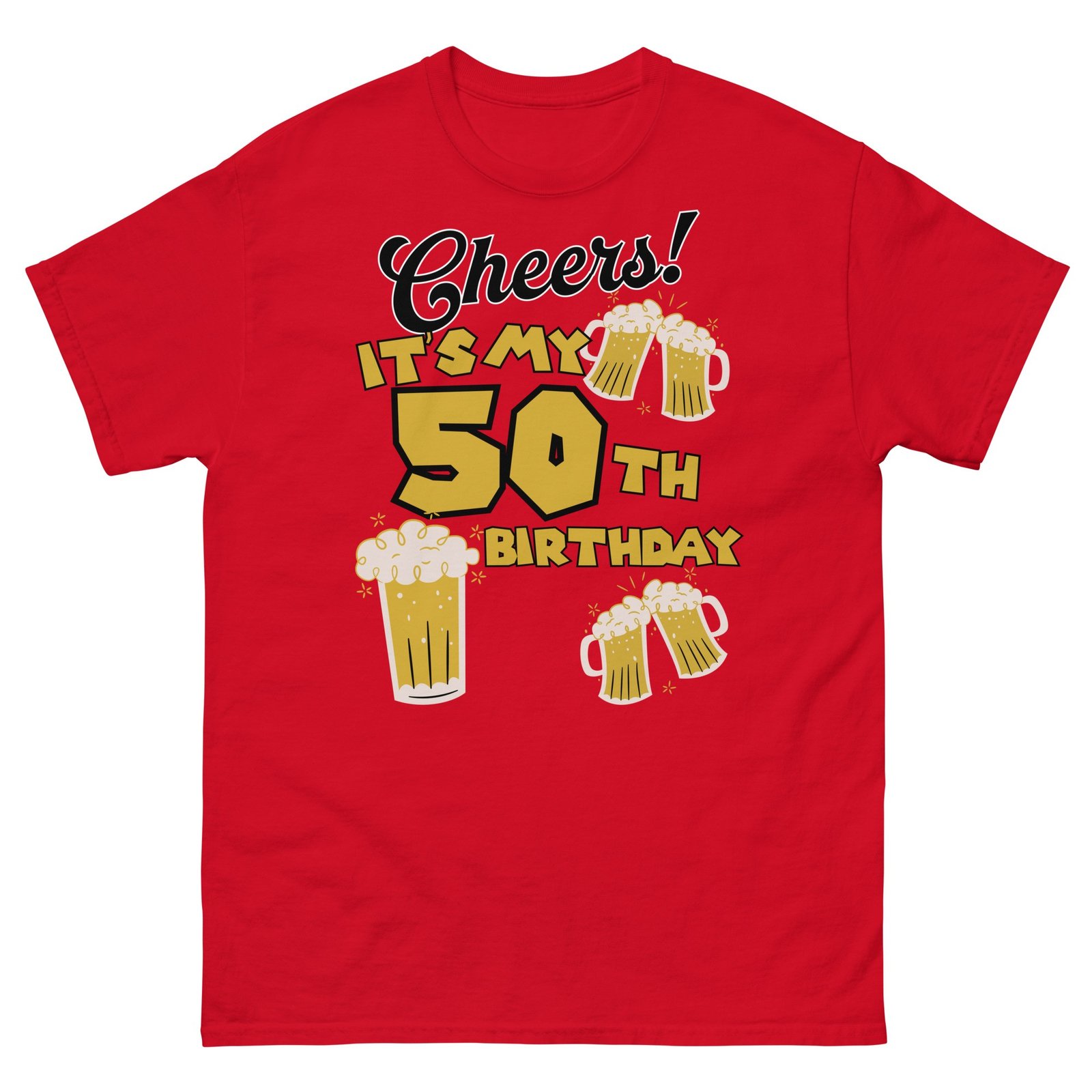 Looking for a lively, fun gift for a man who’s about to celebrate the big five-oh? This 50th Birthday T-shirt is the perfect choice! Featuring the cheerful slogan “Cheers! It’s My 50th Birthday” surrounded by images of frothy beers, this t-shirt brings the ultimate party vibe to any celebration. Whether it’s for your dad, husband, brother or best mate, it’s a brilliant way to let him wear his milestone with pride – and maybe even score a few free pints along the way!