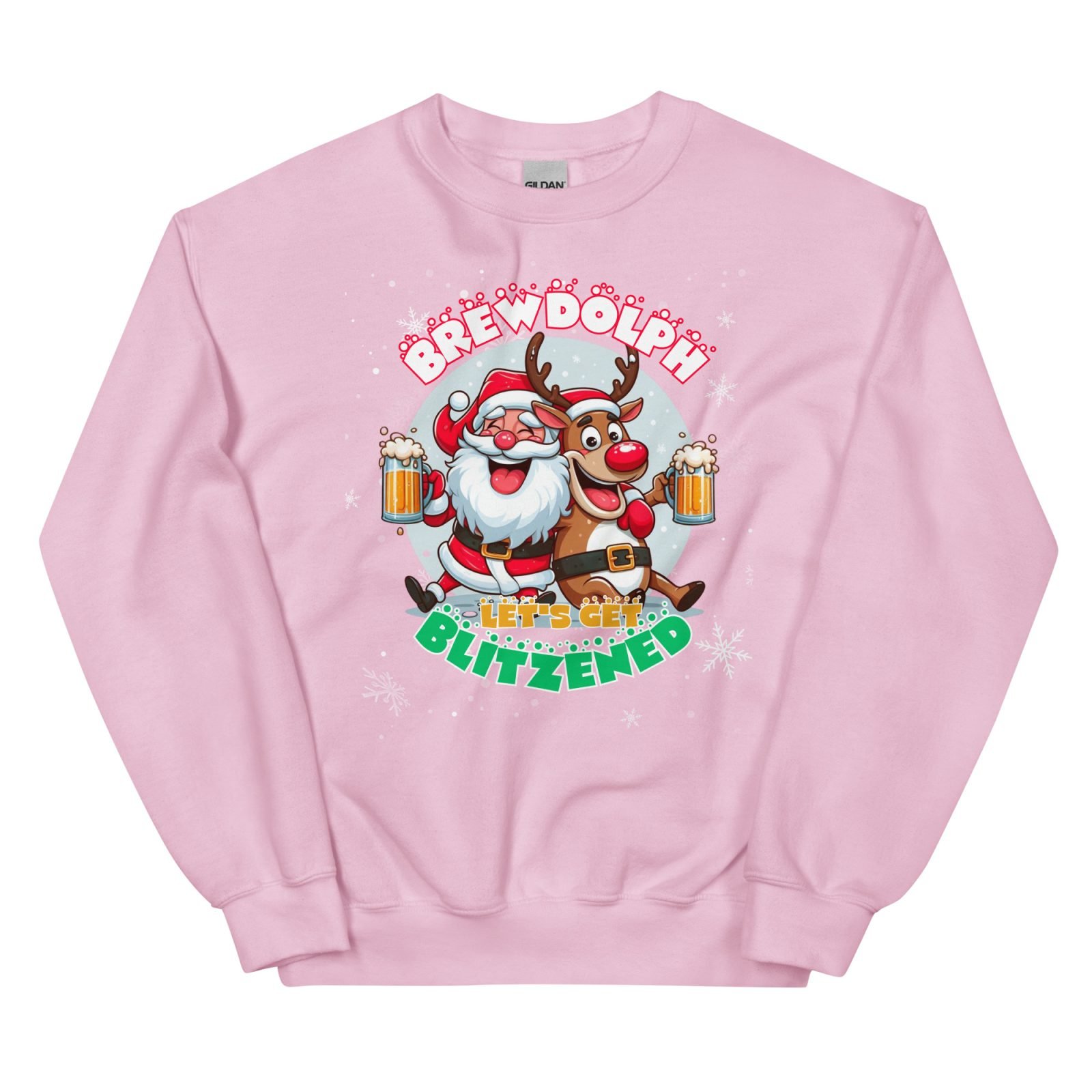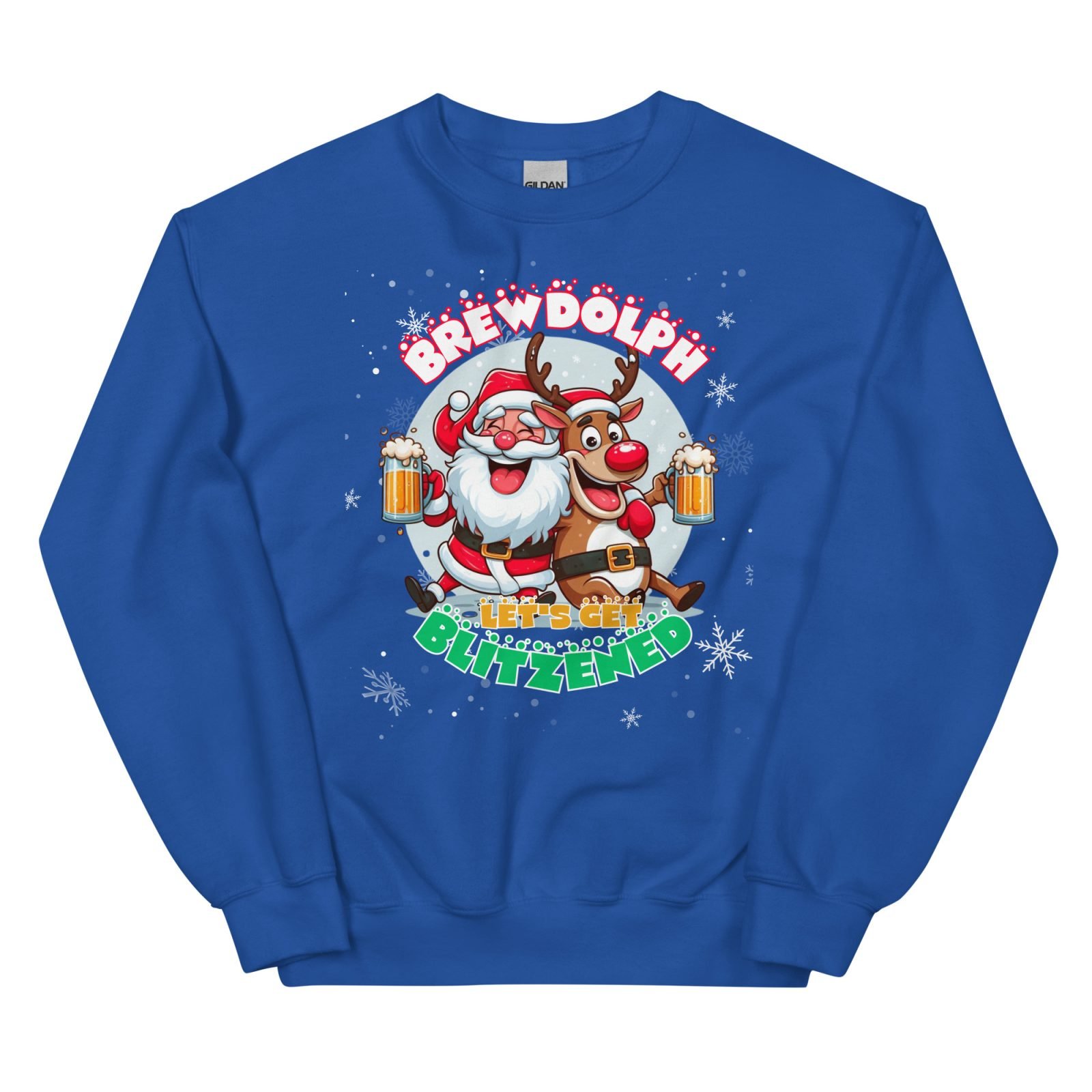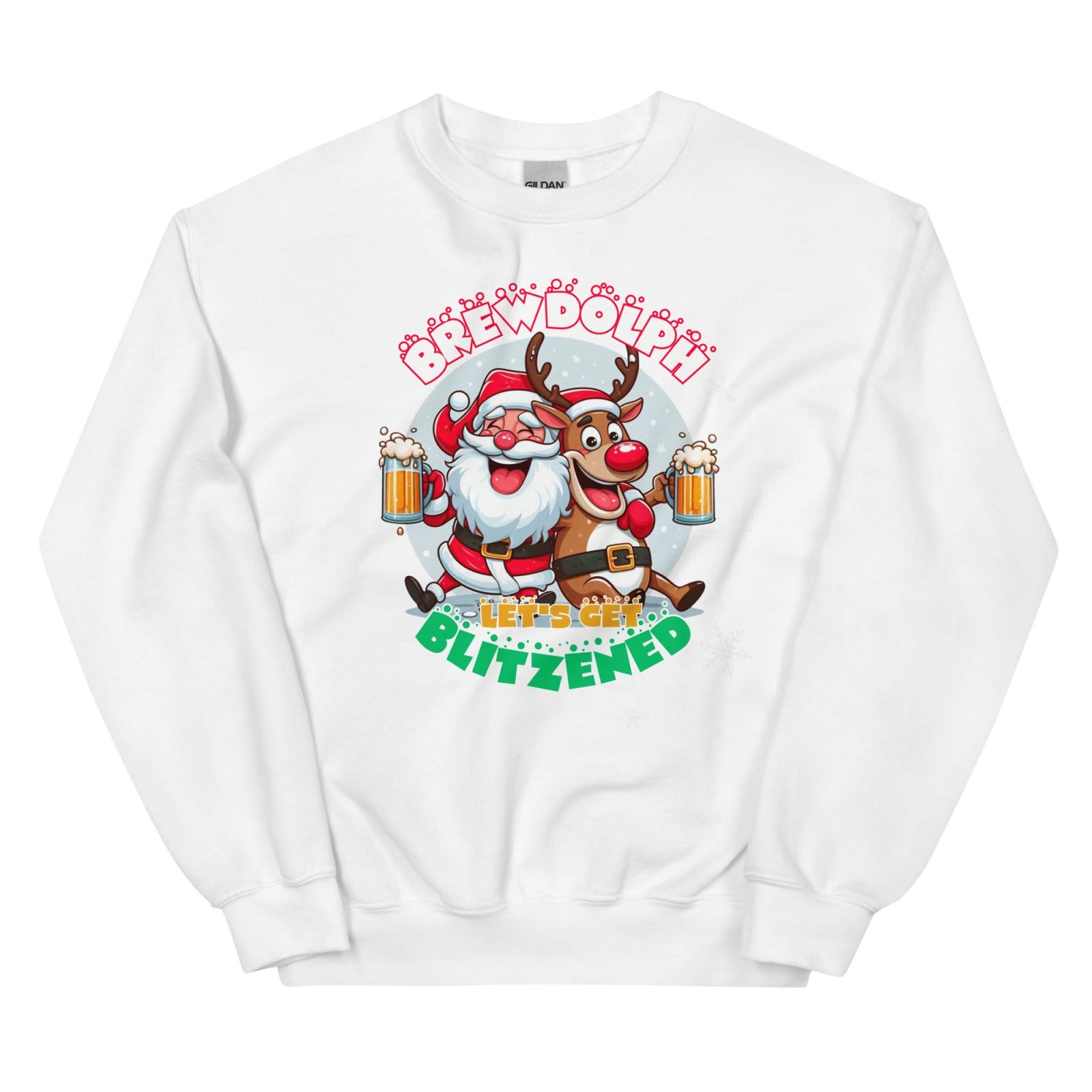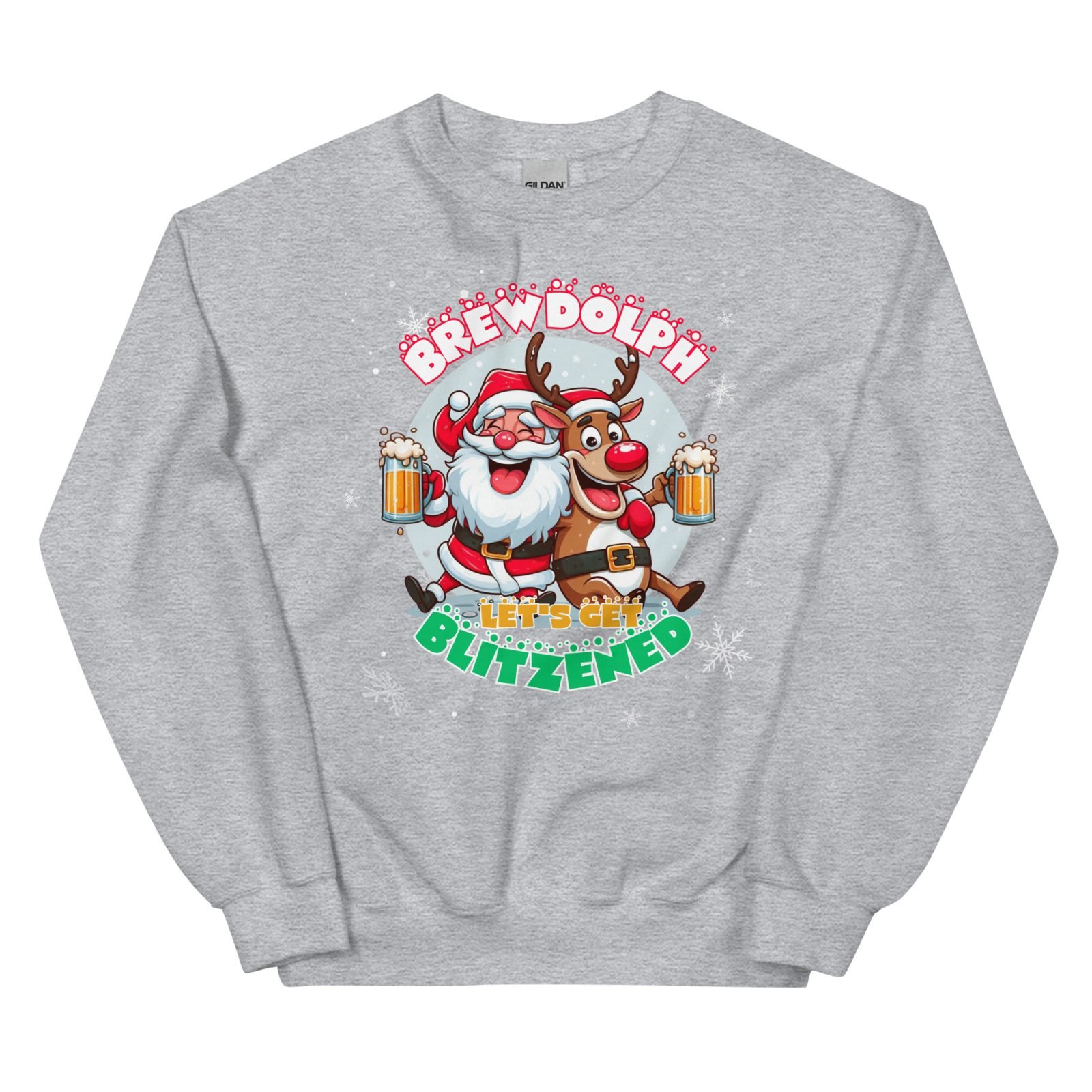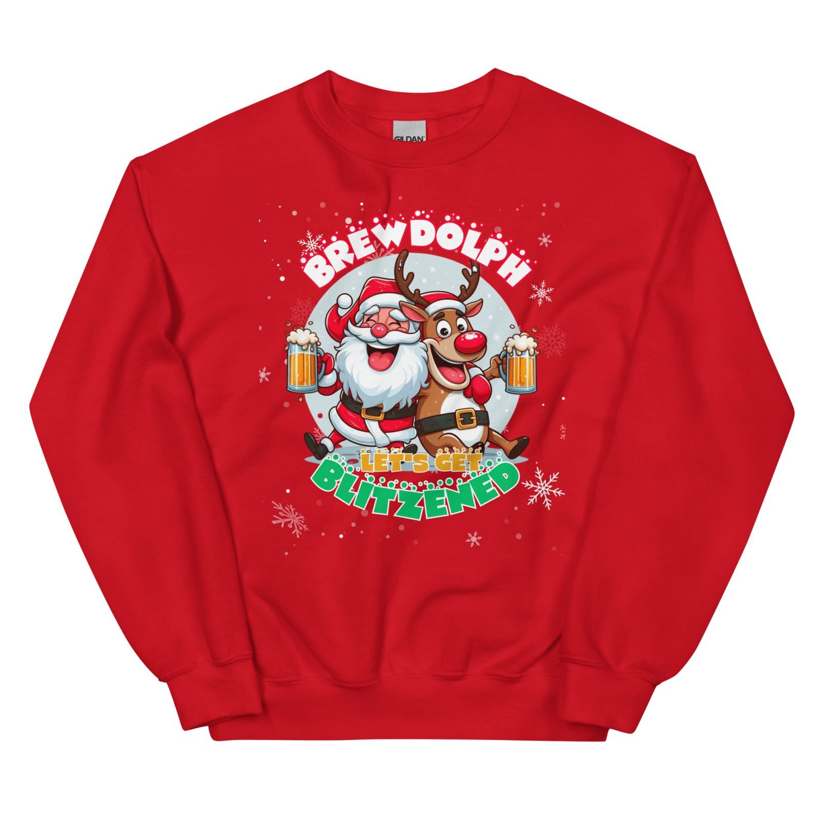Funny Brewdolph Blitzened Christmas Jumper Santa & Rudolph Beers