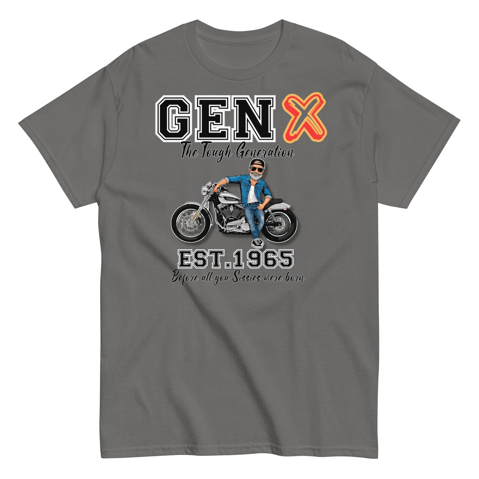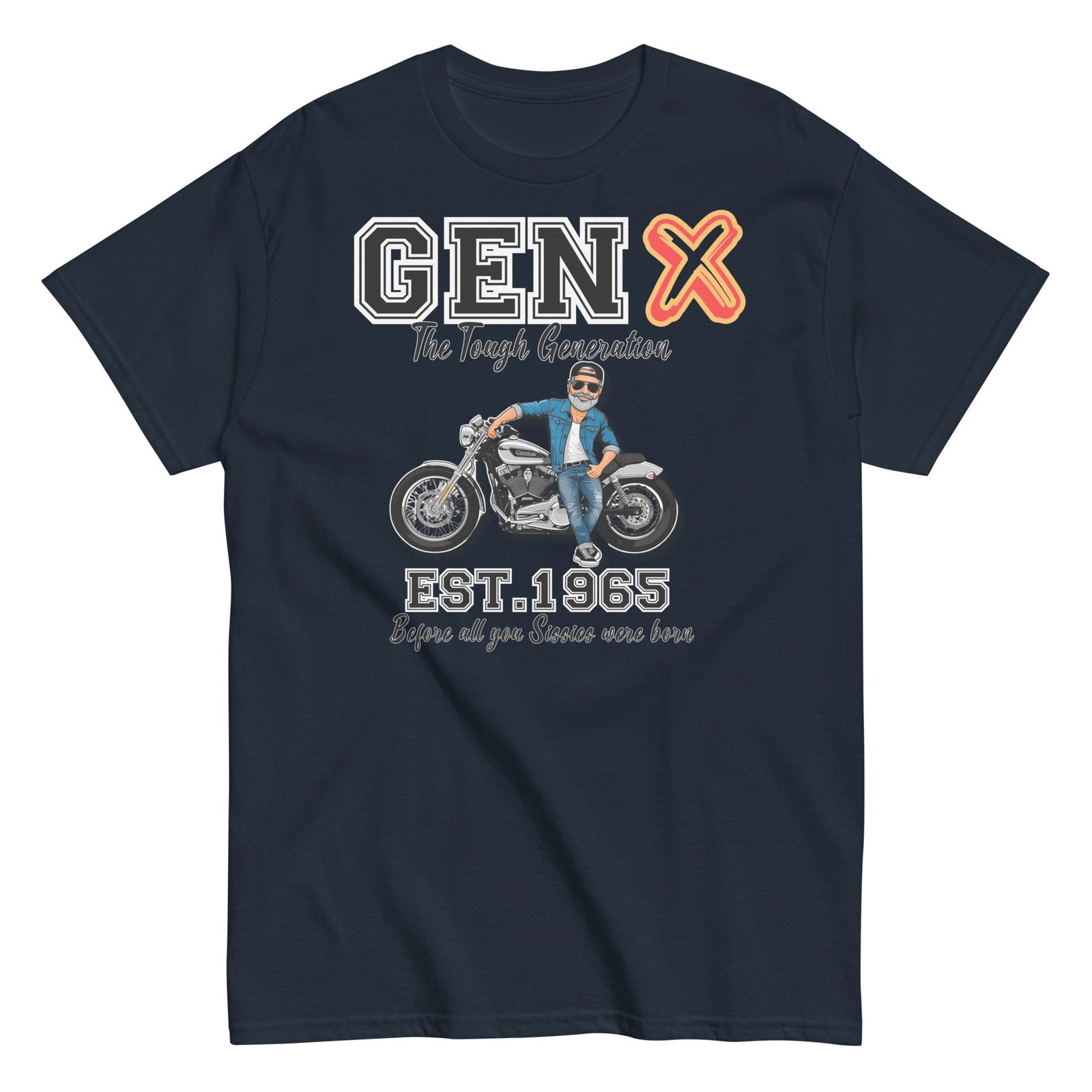 Looking for a brilliant birthday gift for someone born in 1965? This T-shirt Birthday Gift for 1965 Birth Year is an ideal choice for men who belong to Generation X – the resilient, no-nonsense generation. Designed with a bold and humorous touch, it features the statement “GEN X – The Tough Generation – Est. 1965 – Before All You Sissies Were Born”, along with a striking image of a grey-bearded biker standing confidently next to his motorcycle. If you’re after a fun, affordable, and memorable gift, this is the one to go for.