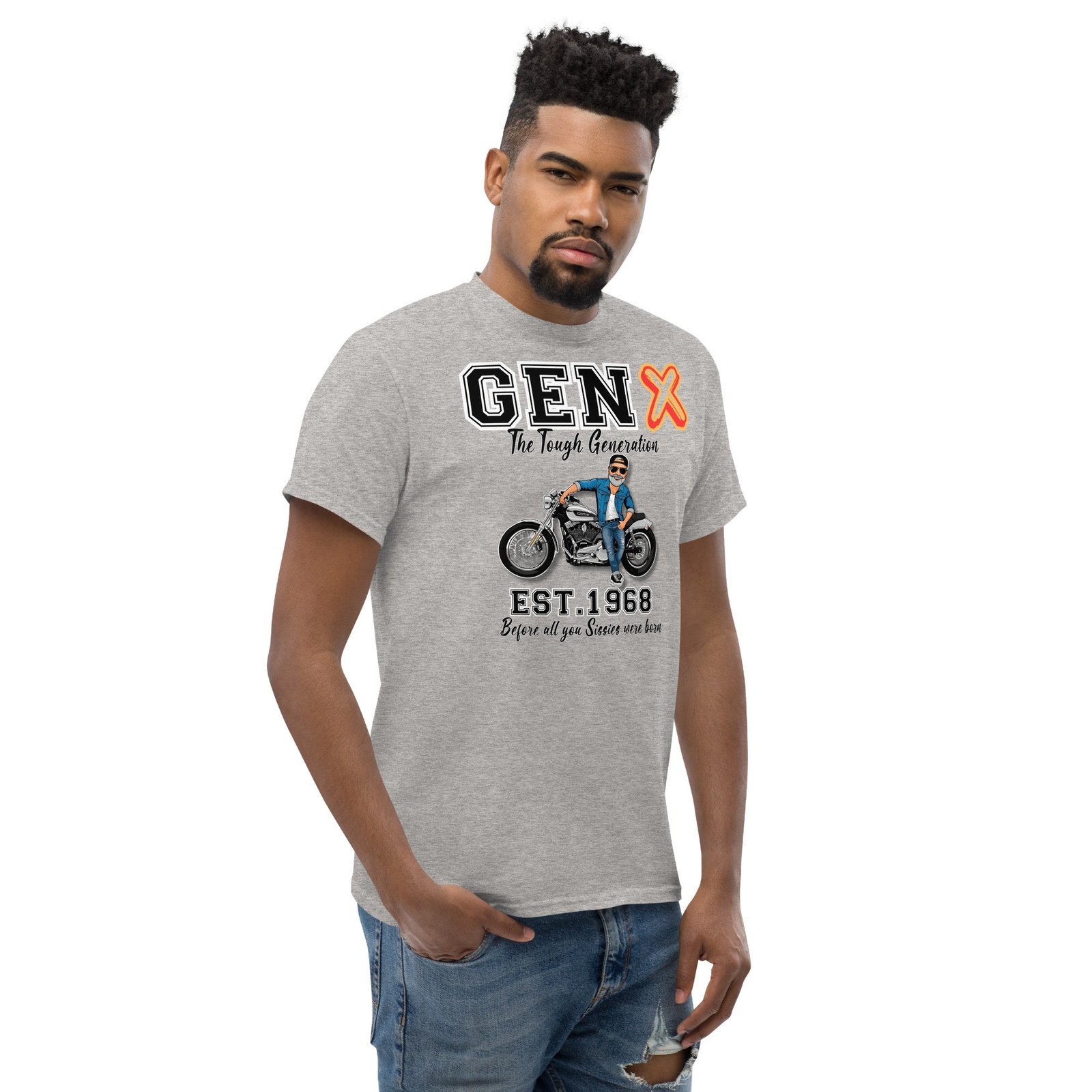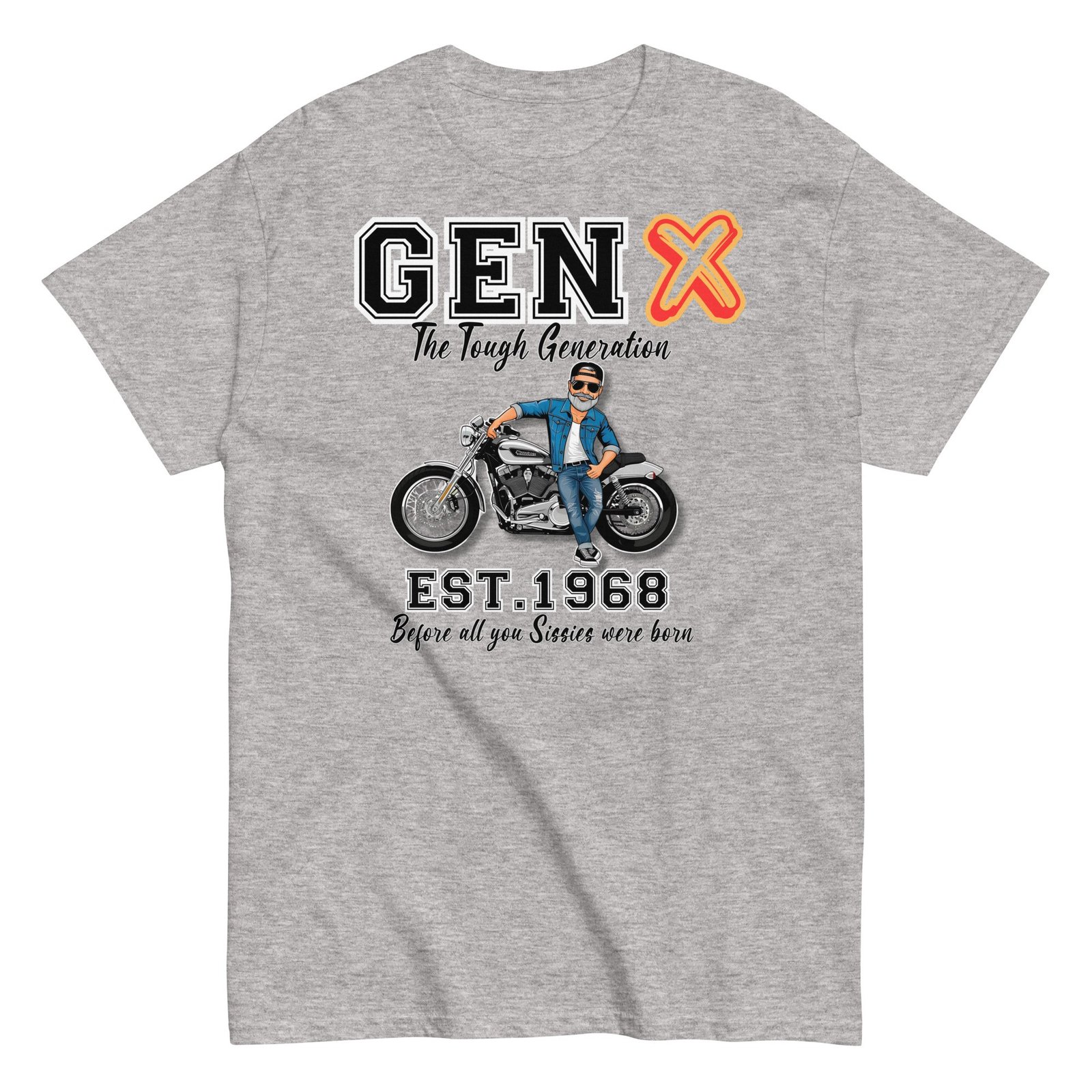 Looking for the perfect T-shirt Birthday Gift for 1968 Birth Year? This bold and humorous design is ideal for men who are proud to be part of Generation X. Featuring the statement “GEN X – The Tough Generation – Est. 1968 – Before All You Sissies Were Born”, along with a striking image of a grey-bearded biker standing next to his motorcycle, this t-shirt makes a strong and stylish statement. If you’re after a fun and affordable birthday present that will be appreciated, this is the perfect choice.