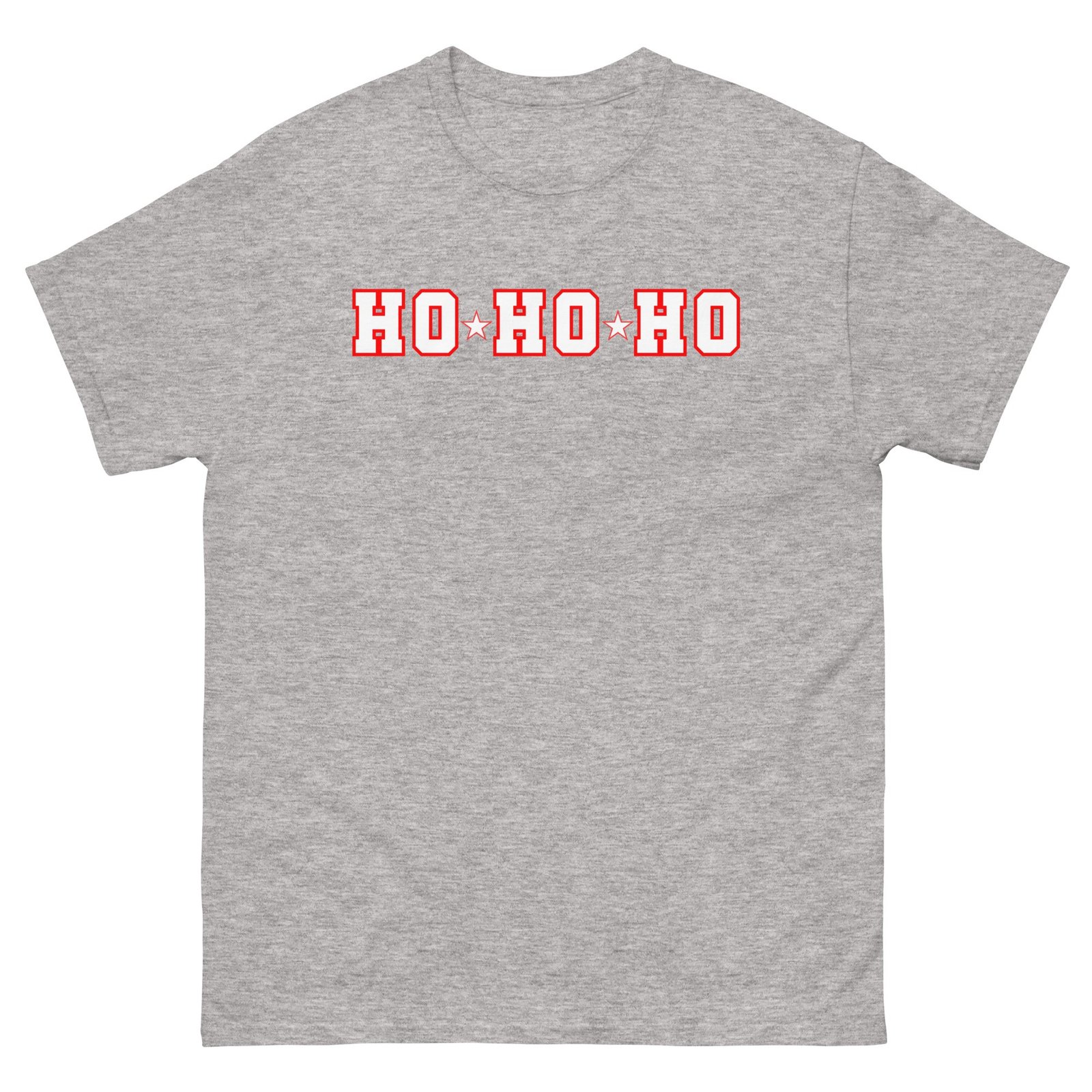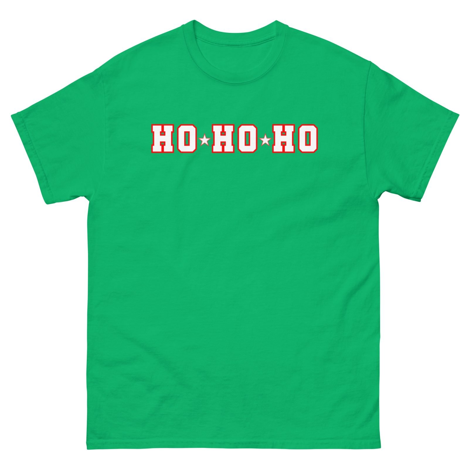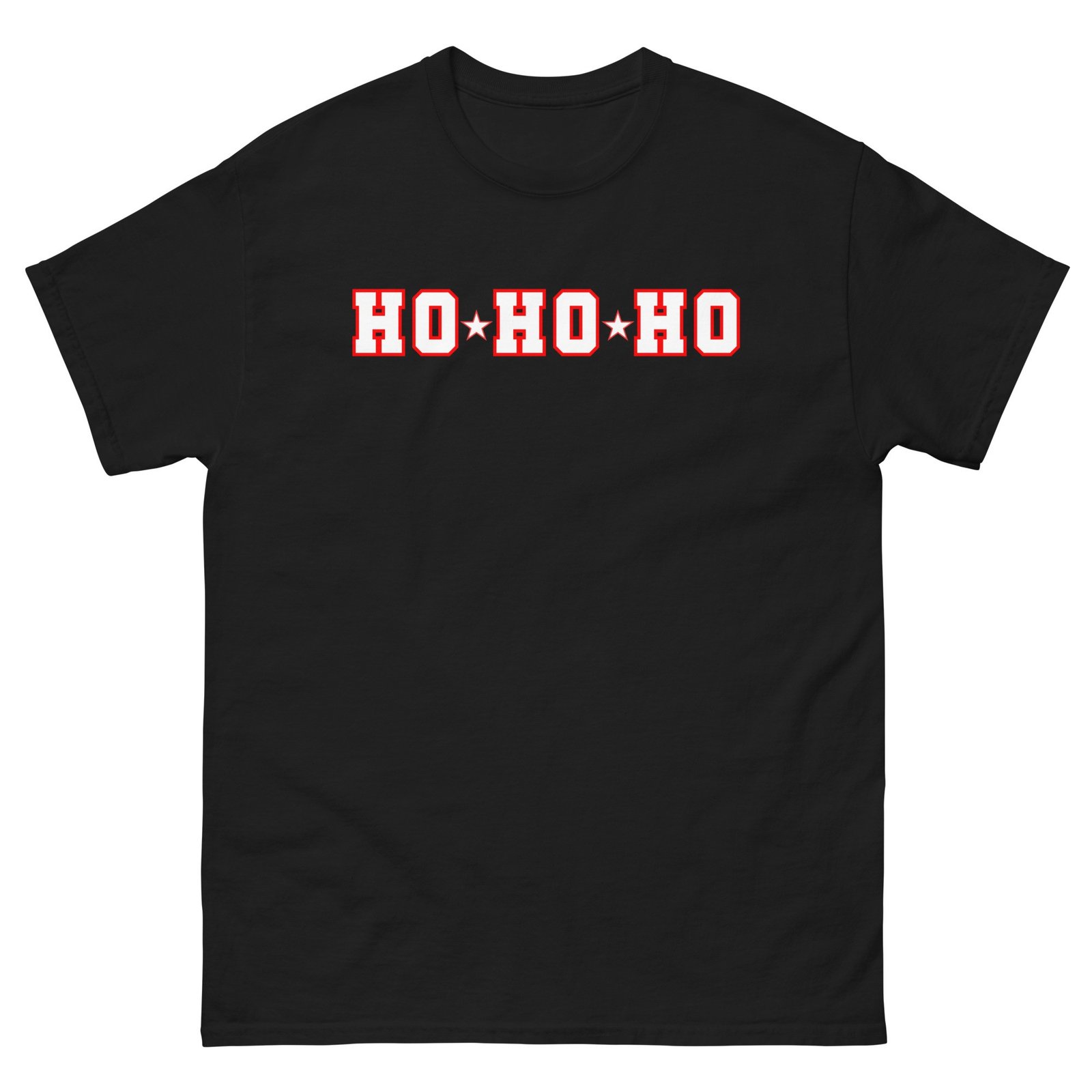 The HO HO HO Christmas T-Shirt is the ultimate festive choice for men who prefer to skip the heavy Christmas jumper but still want to embrace the festive spirit. This stylish T-shirt keeps it simple yet fun, featuring the bold text “HO HO HO” emblazoned across the chest, with two stars nestled between each “HO” for a touch of festive sparkle. Available in a range of colours and sizes from S to 2XL, it’s a versatile and comfortable alternative that brings Christmas cheer without the bulk of a traditional jumper.