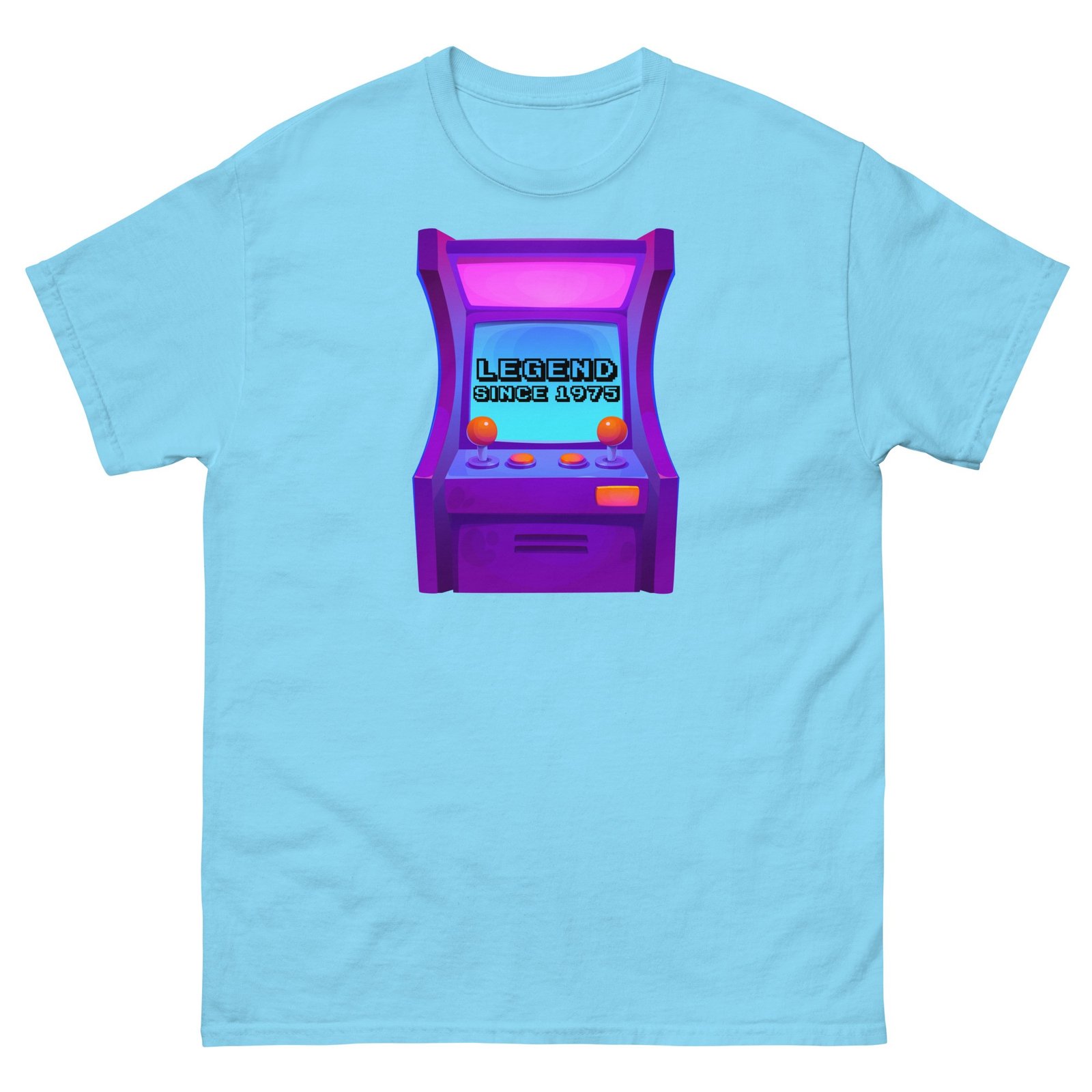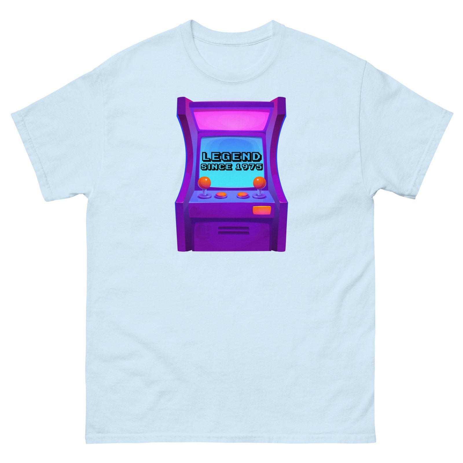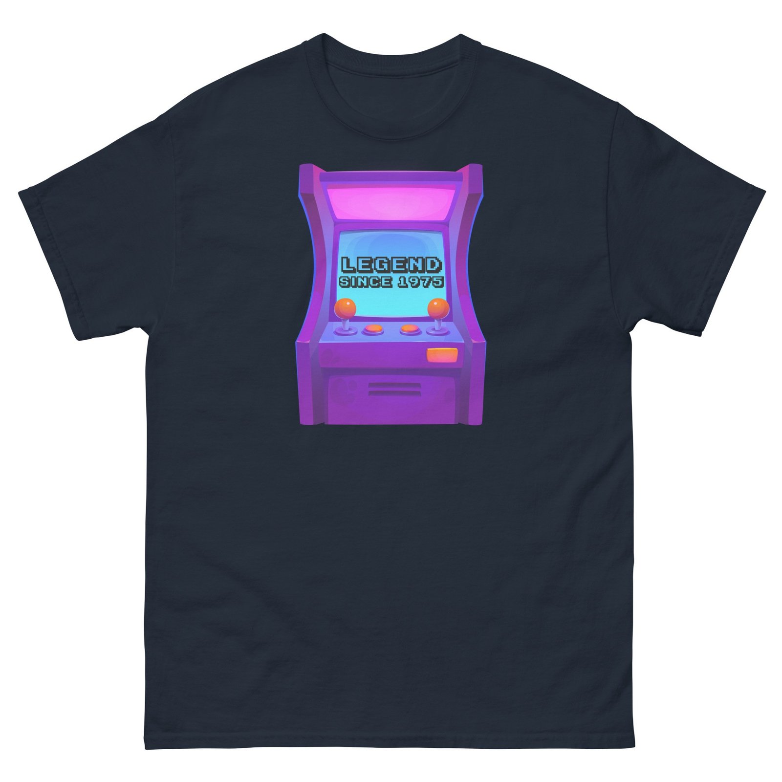 Celebrate 50 years of greatness with this Legend Since 1975 Retro Arcade Gaming T-shirt—a timeless gift for the ultimate retro gaming fan.