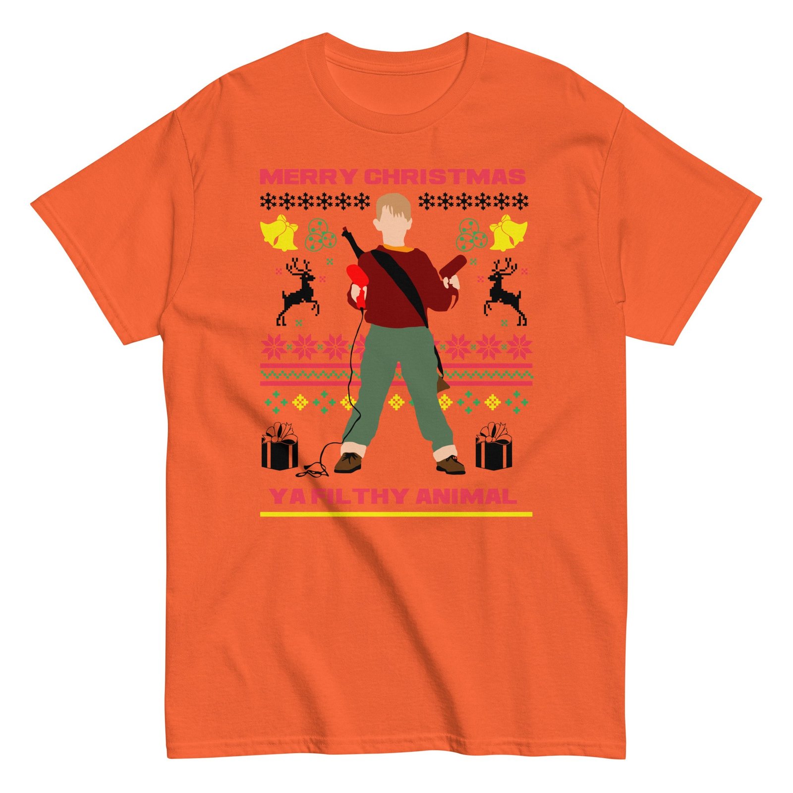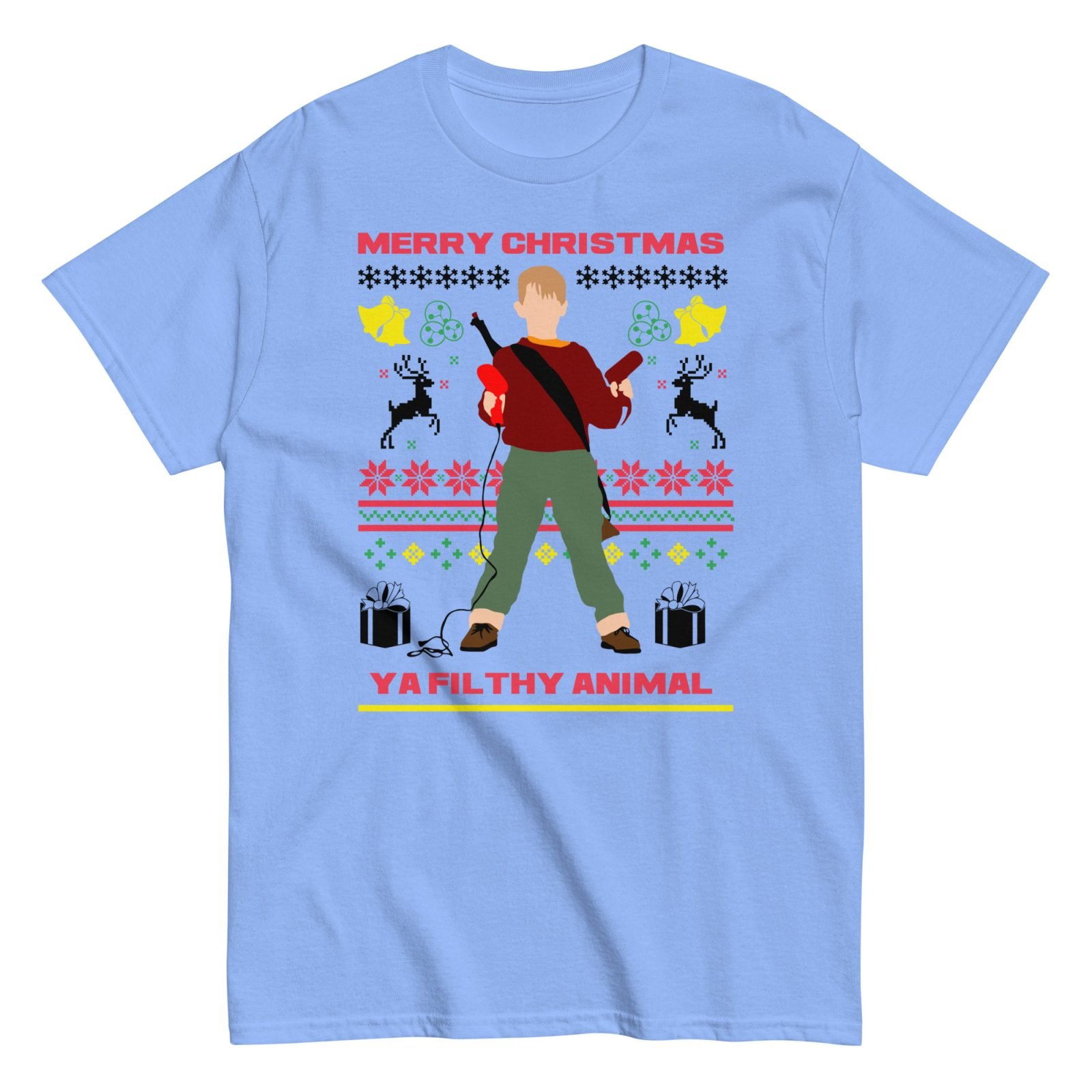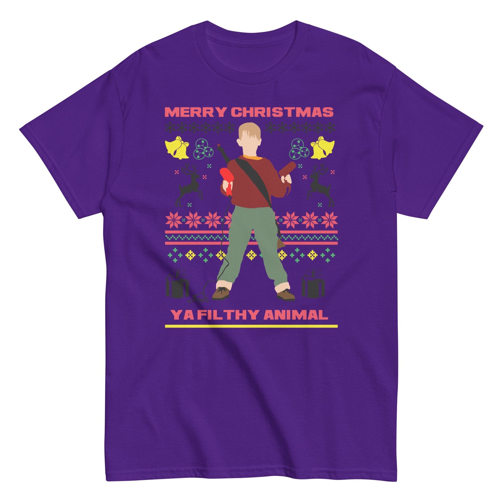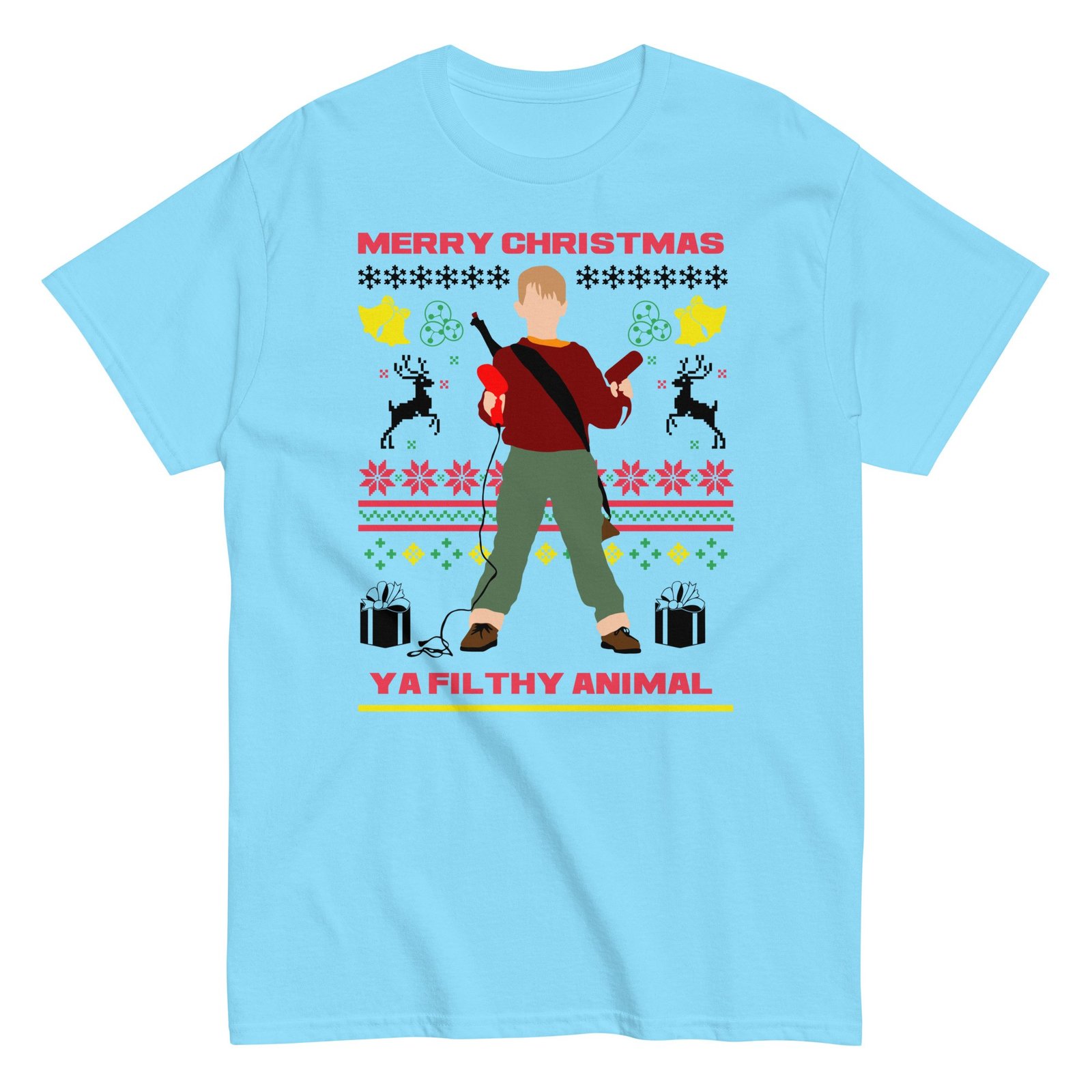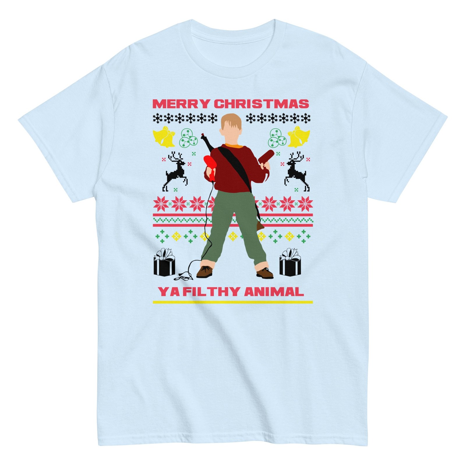 From Christmas dinners to casual outings, this T-shirt fits right in with any festive event where you can have fun with it’s “Merry Christmas Ya Filthy Animal” message. Its light, breathable fabric makes it a great choice for layering or wearing on its own, while the unique design keeps the holiday spirit alive. Pair it with jeans for a laid-back look or under a jacket for a more dressed-up style—the possibilities are endless.
