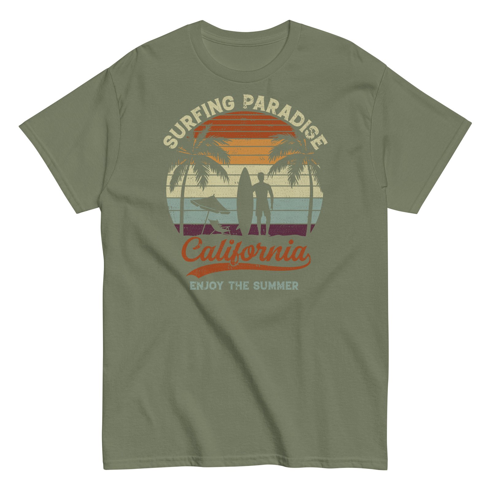If you’re after the perfect gift for a bloke who’s all about sun, sea, and surfboards, the Surfing Paradise California T-shirt Surf Tee is an absolute winner. Combining retro charm with West Coast vibes, this tee captures the essence of an endless summer in California. Whether he’s an experienced surfer or just lives for that chilled beach lifestyle, this one delivers style and comfort with a healthy dose of coastal nostalgia.