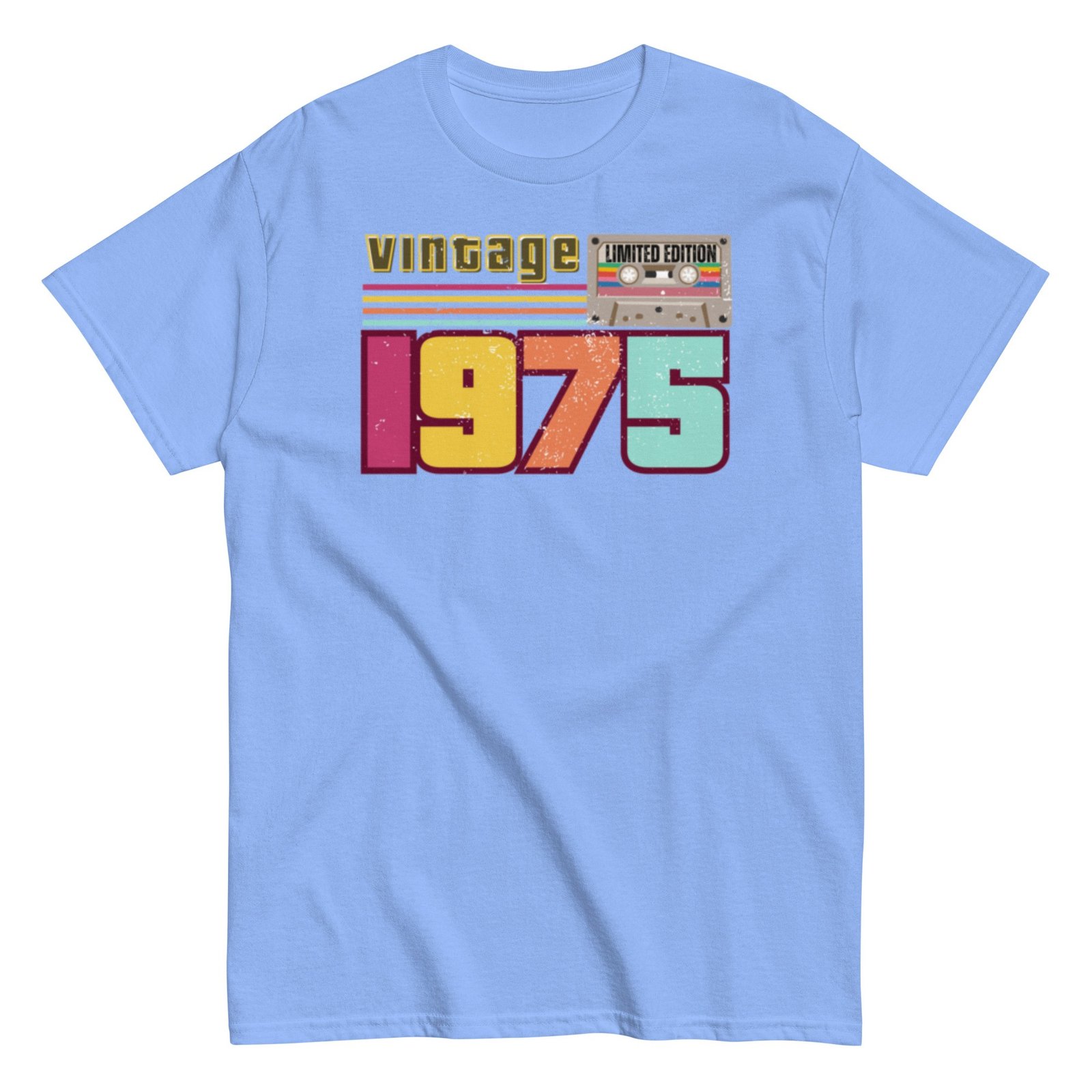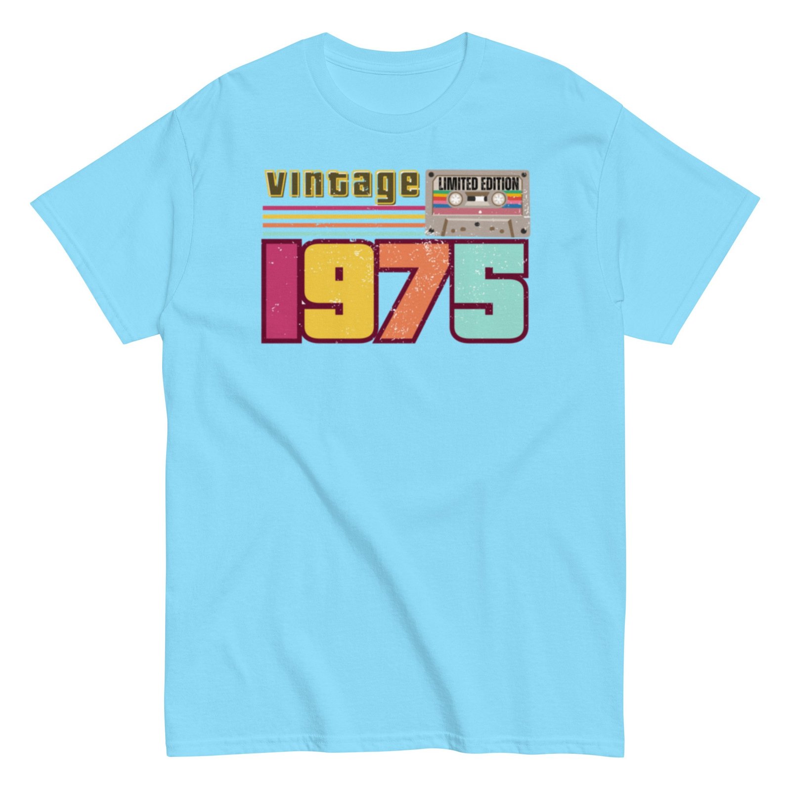 Looking for the perfect birthday gift for someone born in 1975? The Vintage 1975 Birthday T-shirt is a fantastic choice, designed to bring a touch of nostalgia with a modern twist. Featuring the bold text “Vintage 1975” alongside a classic retro cassette tape with the words “Limited Edition” written across it, this T-shirt is a playful nod to the year of birth. Whether you’re shopping for a friend, partner, or family member, this T-shirt captures the essence of a bygone era while celebrating their milestone in style. Available in a variety of colours and sizes from S to 2XL, it’s the ideal birthday present that’s both stylish and thoughtful.