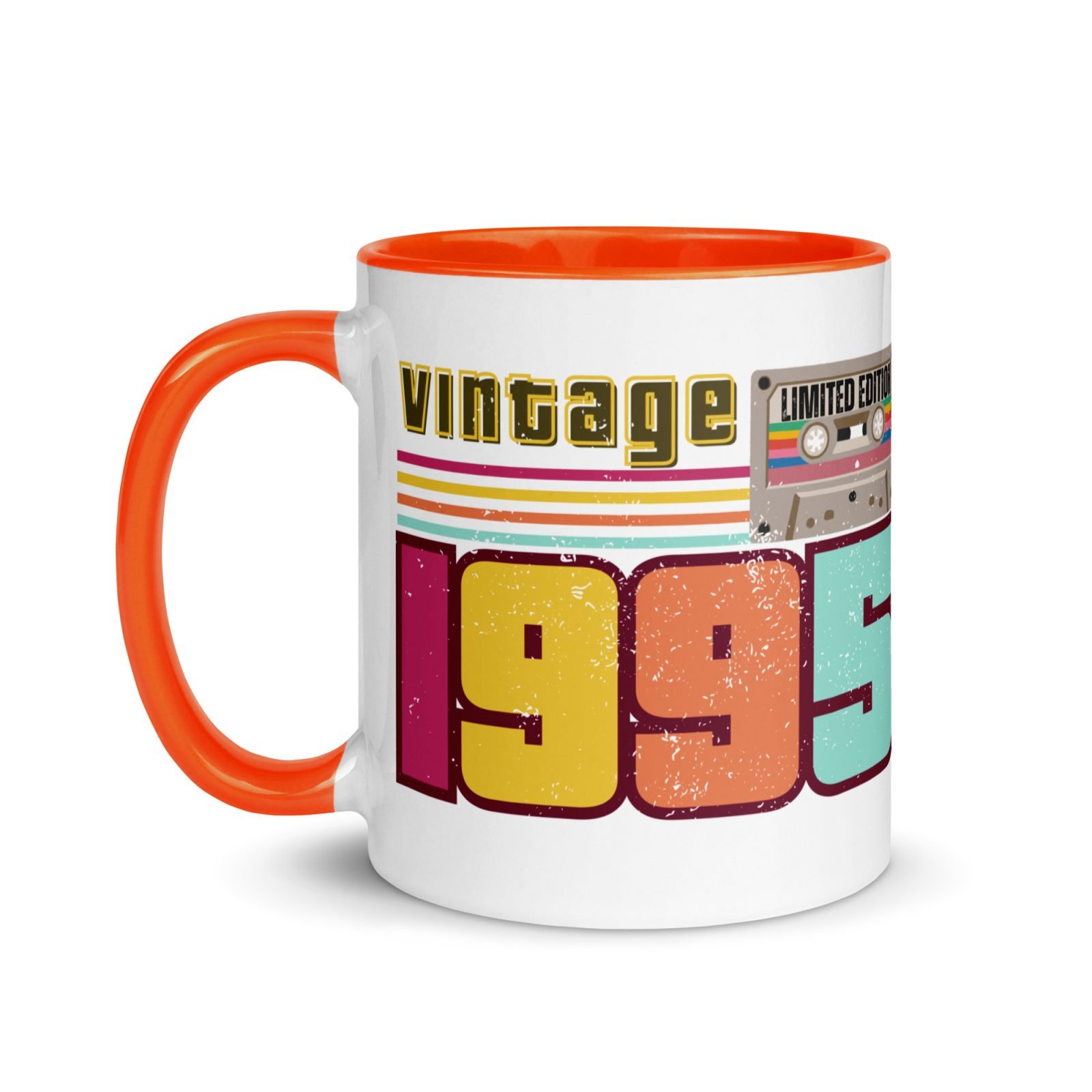 Celebrate a special year with the Vintage 1995 Birthday Mug, the perfect gift for anyone born in 1995. Featuring the bold text “Vintage 1995” along with a retro cassette tape graphic proudly labelled “Limited Edition,” this mug brings a touch of nostalgia to every sip. With its design printed on both sides, it’s as eye-catching as it is meaningful. This 11oz mug comes in a range of colours for the inside and handle, allowing you to personalise it to suit his style. A fun and memorable way to celebrate his birthday, this mug is ideal for daily use and is a lovely reminder of a fantastic year.