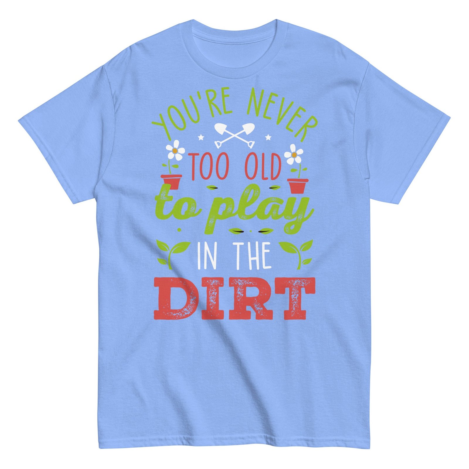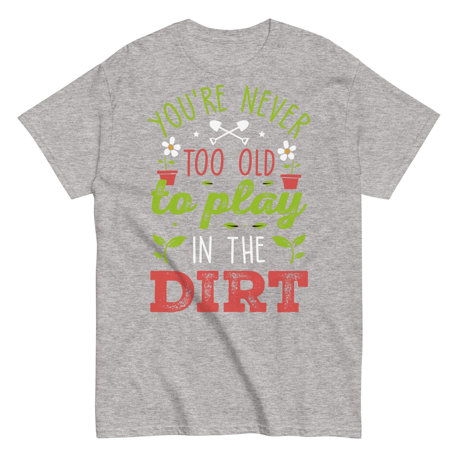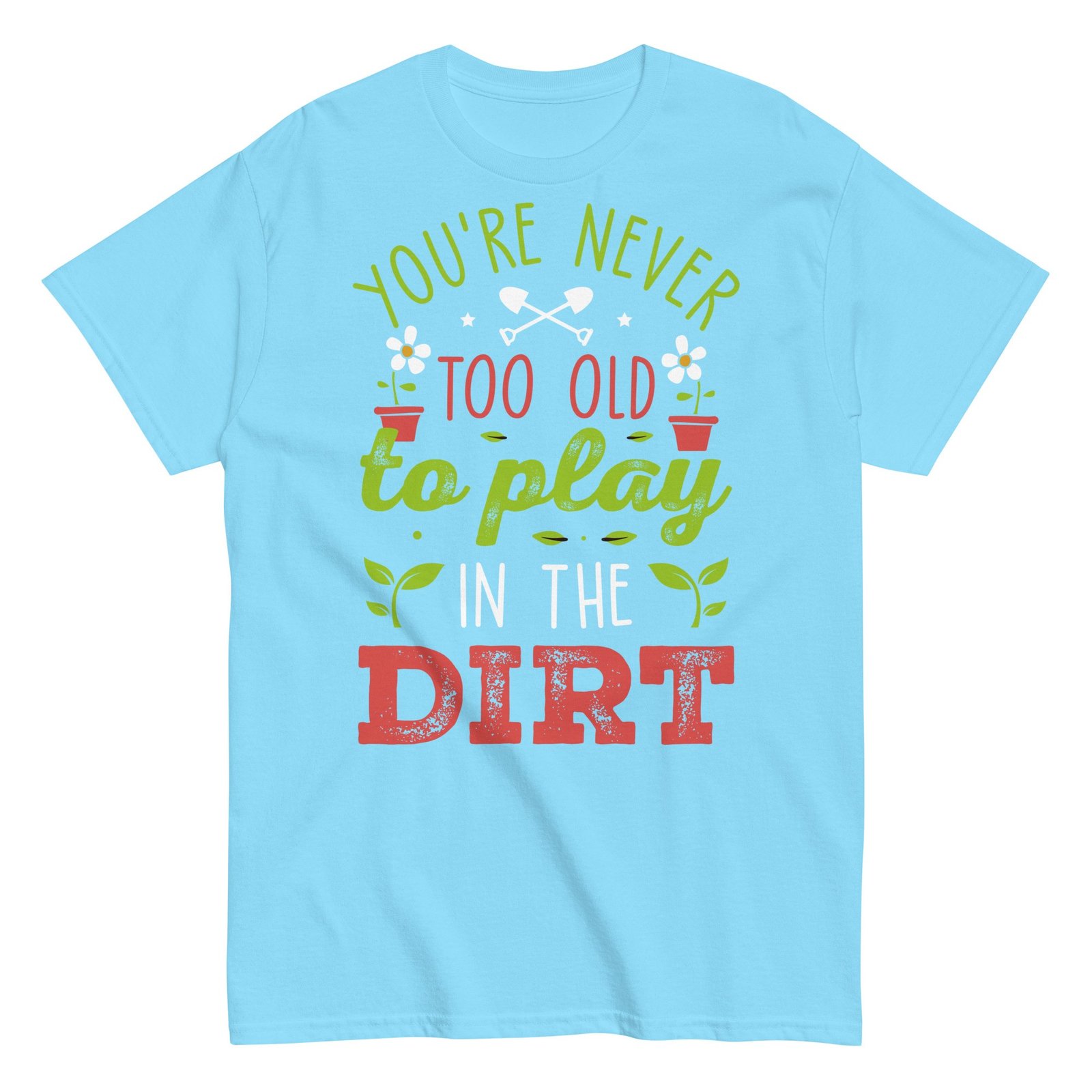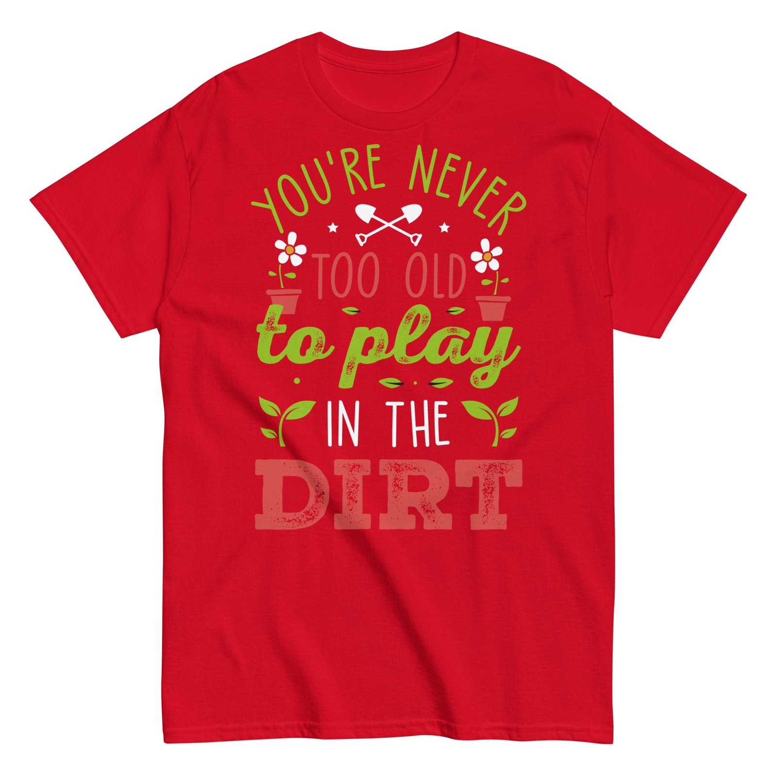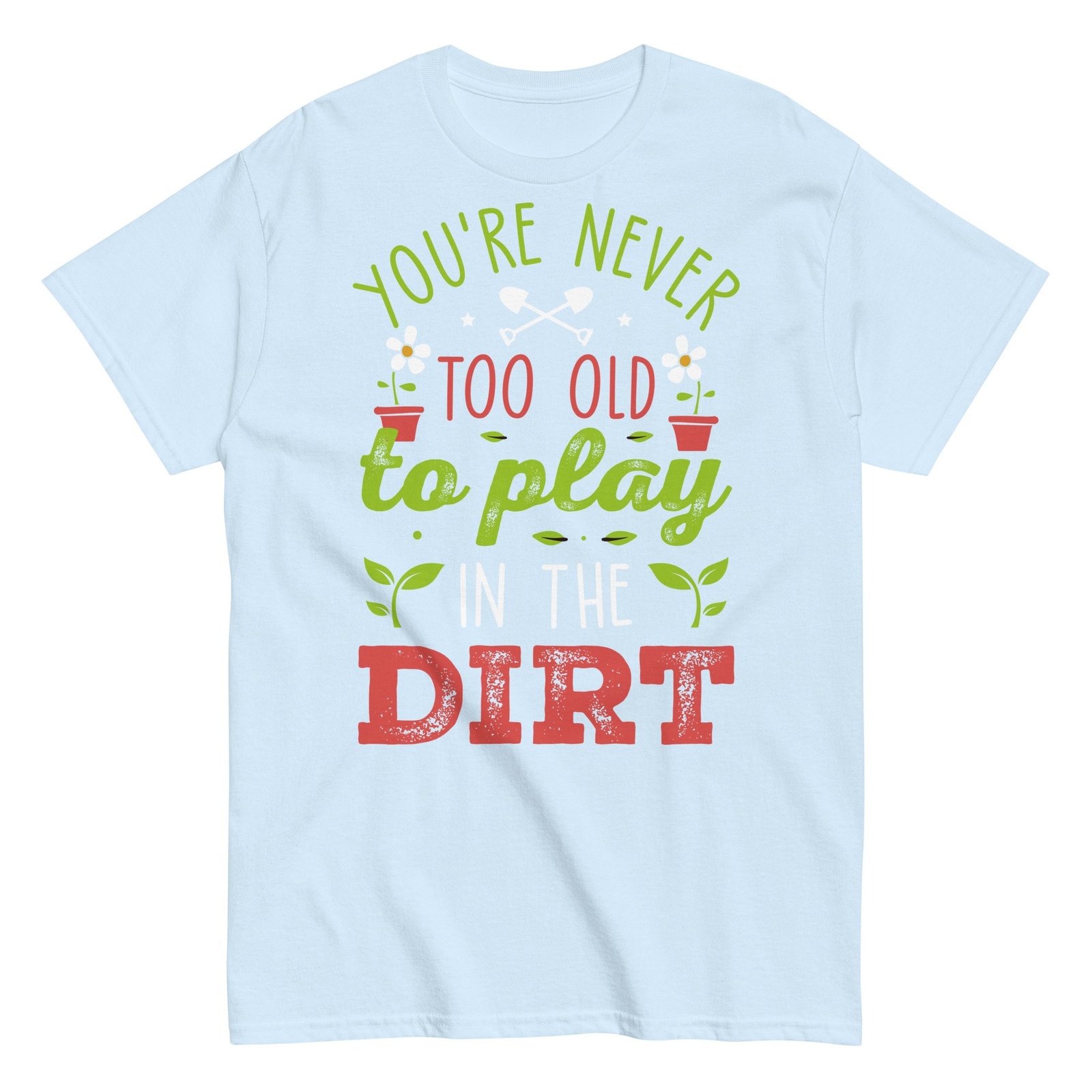 You’re Never Too Old To Play In The Dirt Gardening T-shirt – A Fun and Uplifting Gift for Garden Enthusiasts